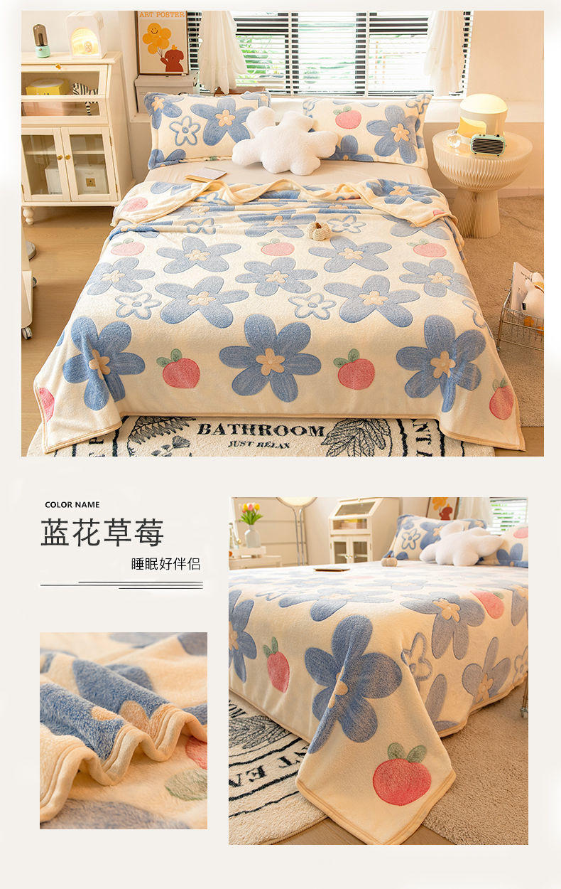 • 블루플라워딸기 [시트/이불은 펴거나 덮을 수 있음]-150x200cm [피부친화적이고 섬세함]