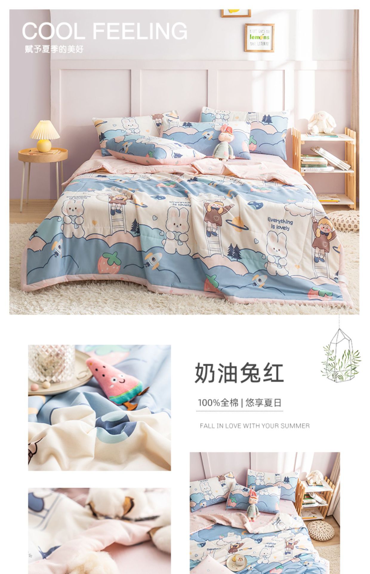 클래스 A 어린이 여름 이불 에어컨 이불 순면 이불 학생 얇은 이불 코어 기계 세탁 가능한 여름 시원한 이불 4 피스 세트 4스토어 가기