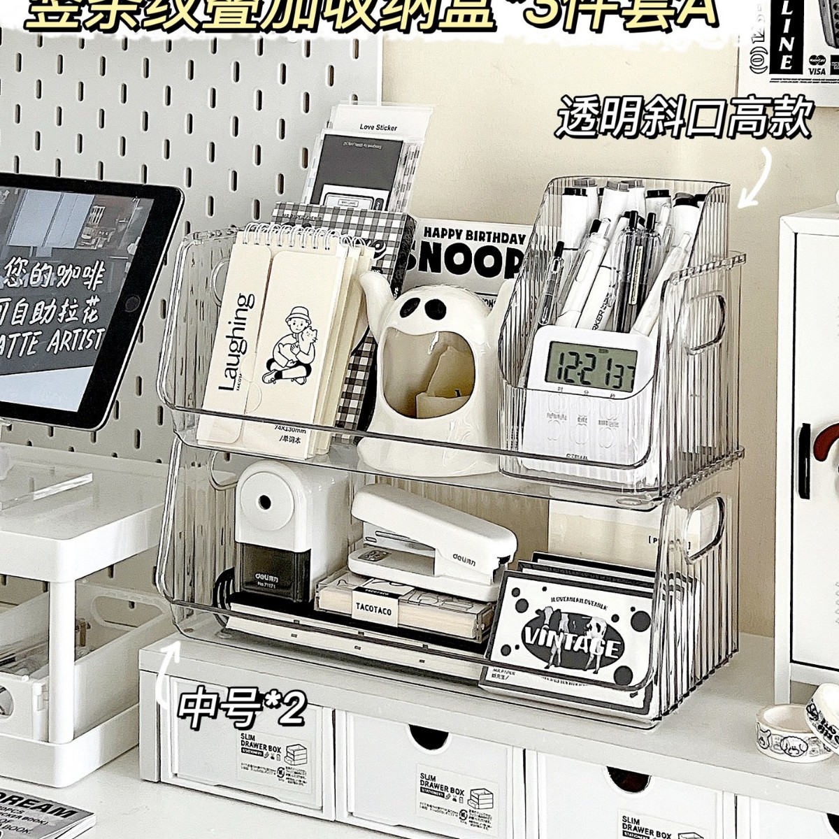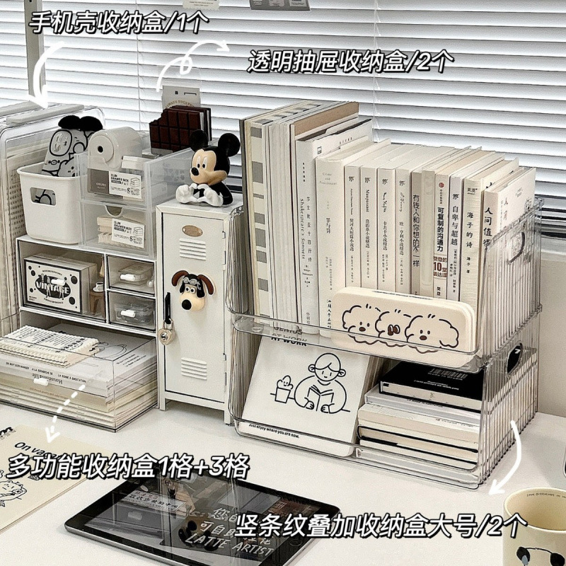 아크릴 데스크탑 보관함 투명 책상 문구 정리함 기숙사 화장품 선반 책상 보관함