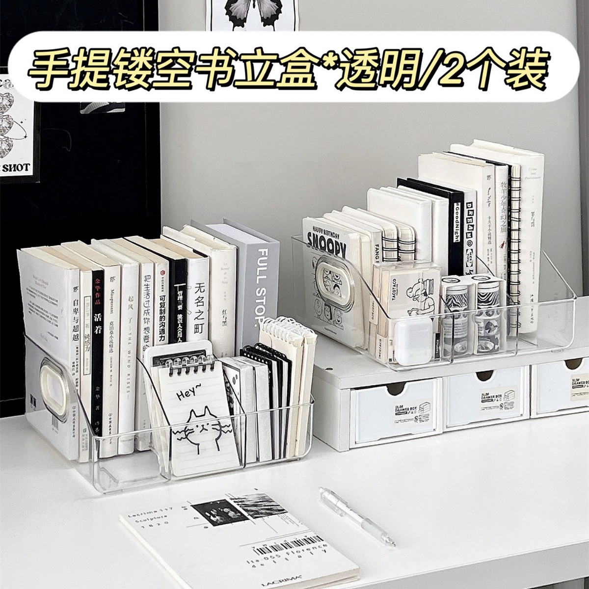 • 휴대용 중공 북엔드 상자*투명/2개 팩₲