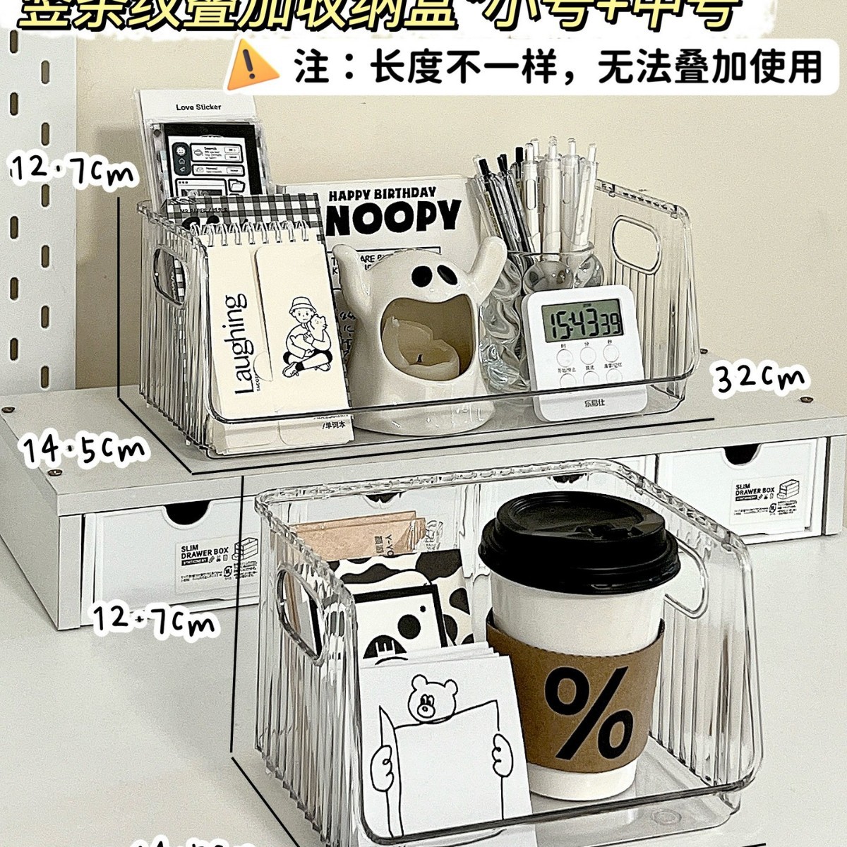 • 세로줄무늬 오버레이 수납함*소형/2개