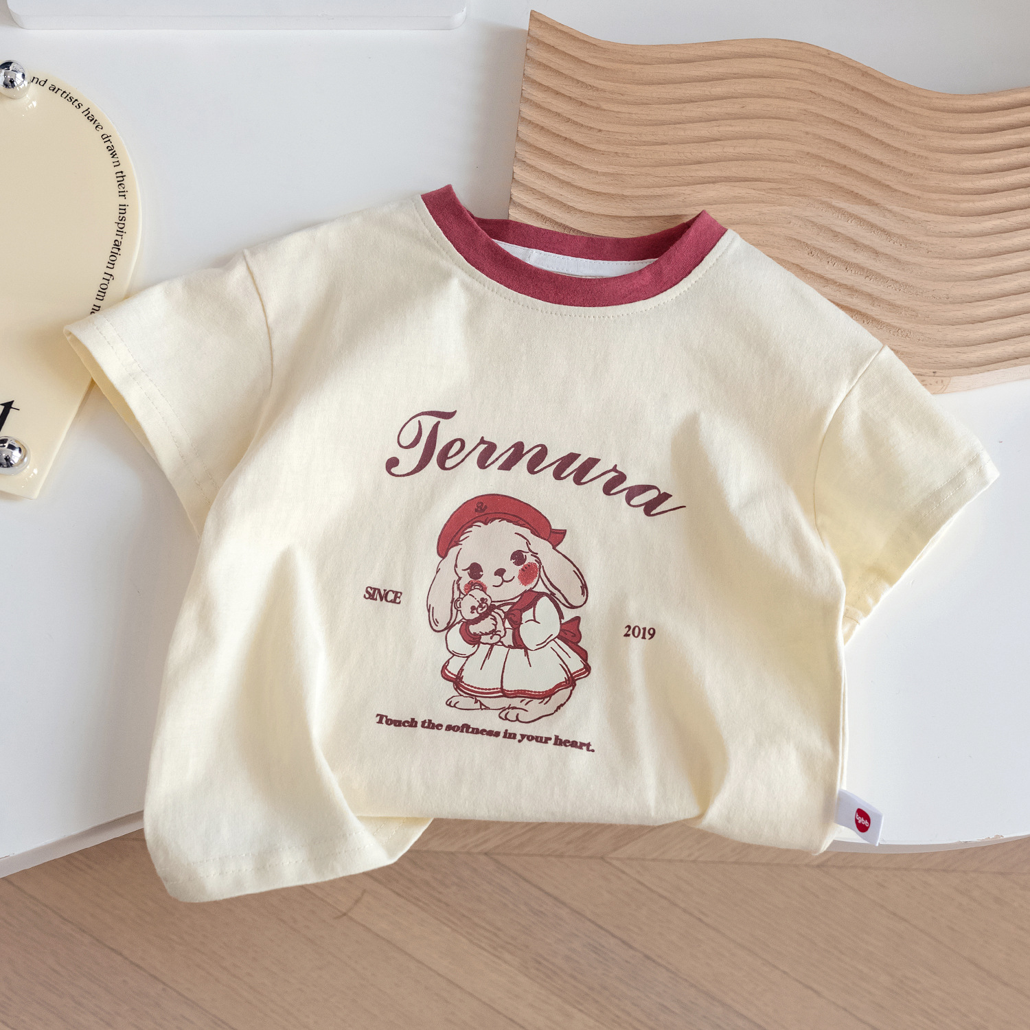 2026 여아 프린트 티셔츠 아동 여름 신상품 만화 캐릭터 캐주얼 반팔 상의 여아 반팔 상의 여름
