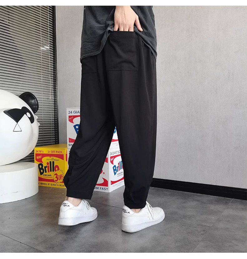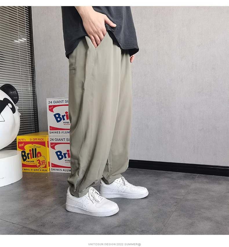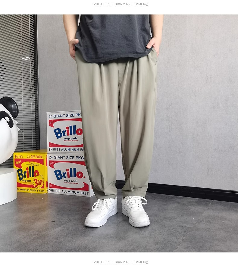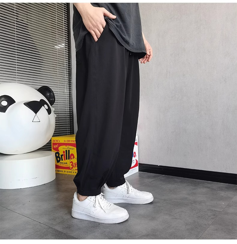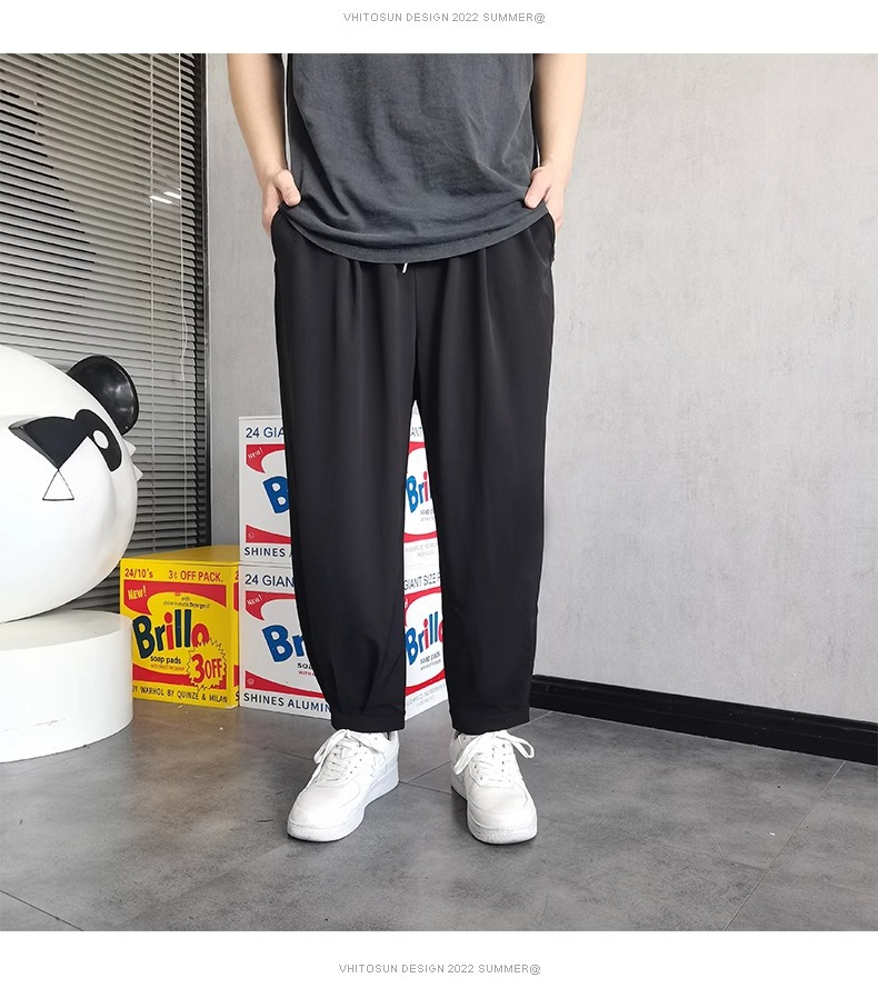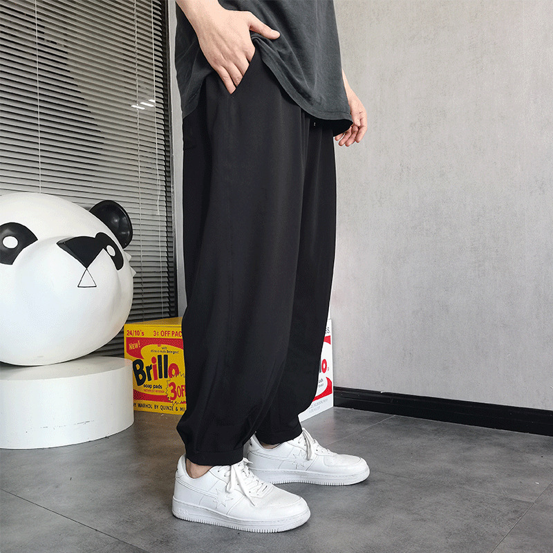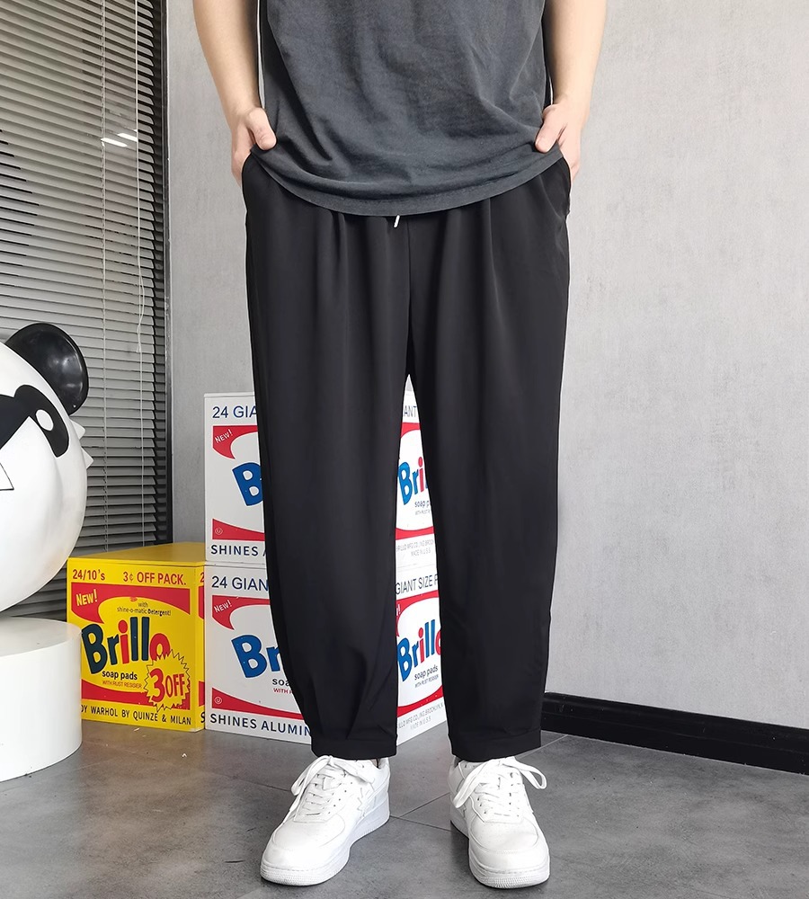 플러스 사이즈 남성용 뚱뚱한 얇은 바지 플러스 사이즈 루즈 아이스 실크 캐주얼 바지 여름 시원한 스트레치 스포츠 바지스토어 가기