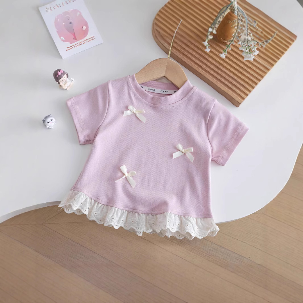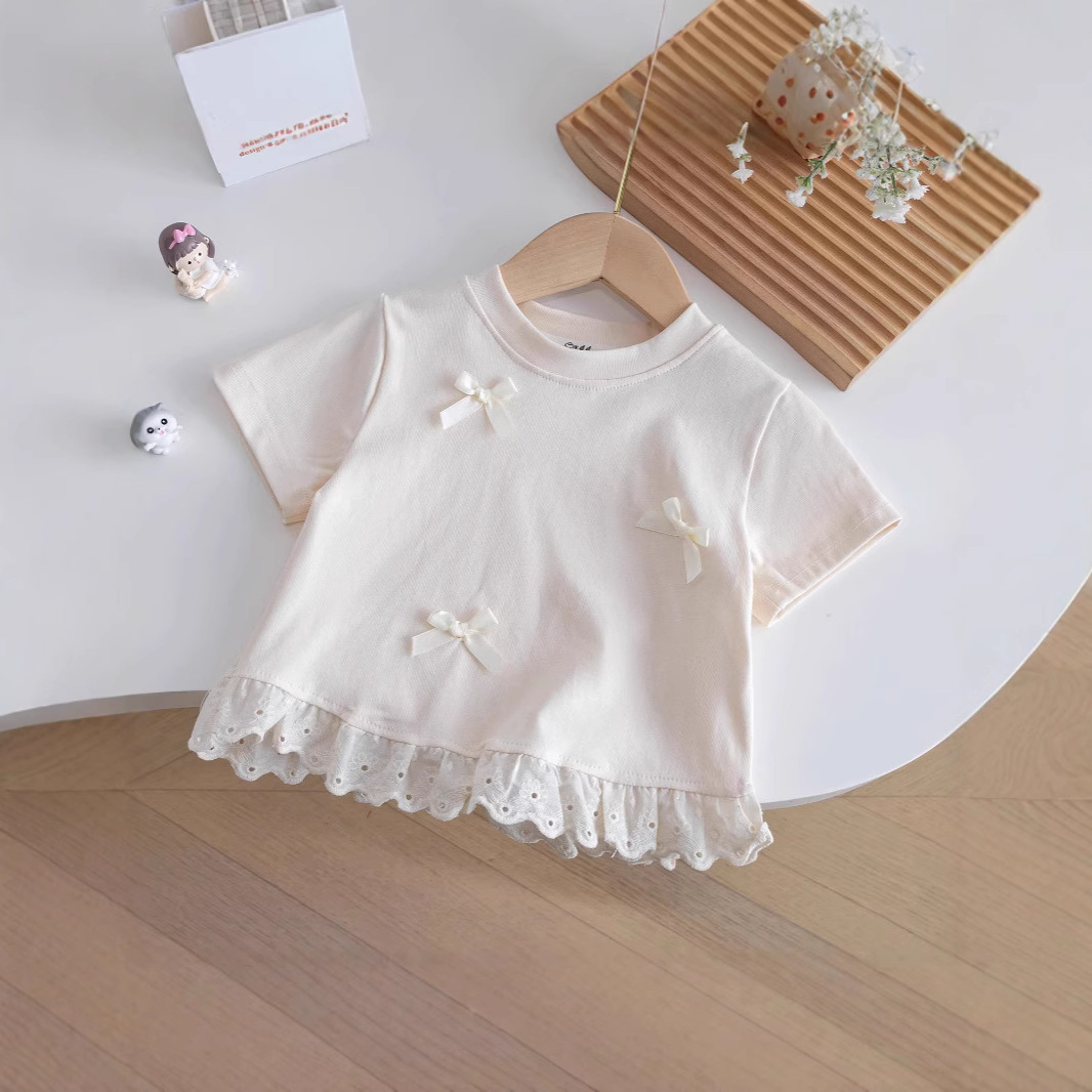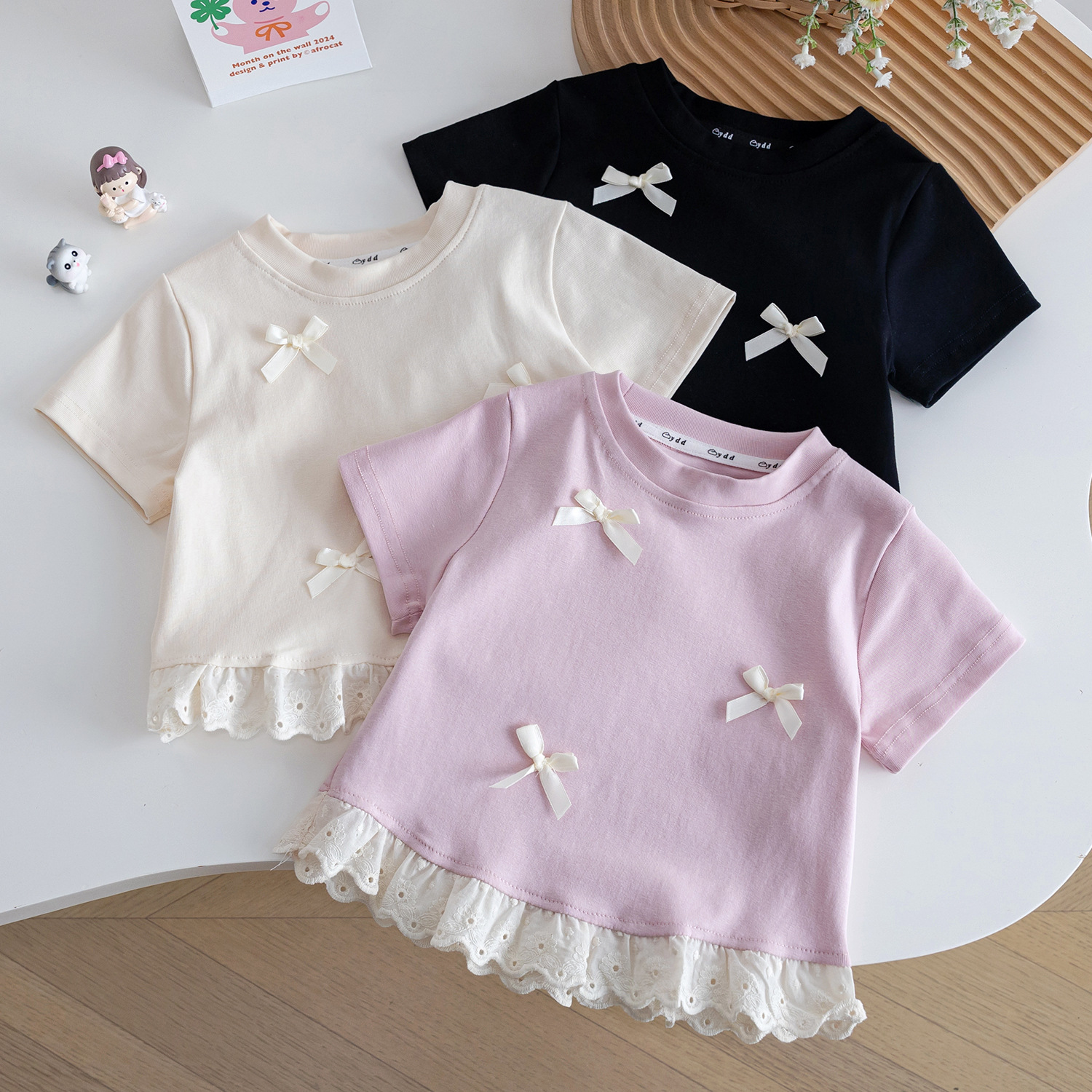 【48시간 배송】여아 여름 반팔 아동복 여름옷 핑크 화이트 반팔 레이스 티셔츠 상의 여름