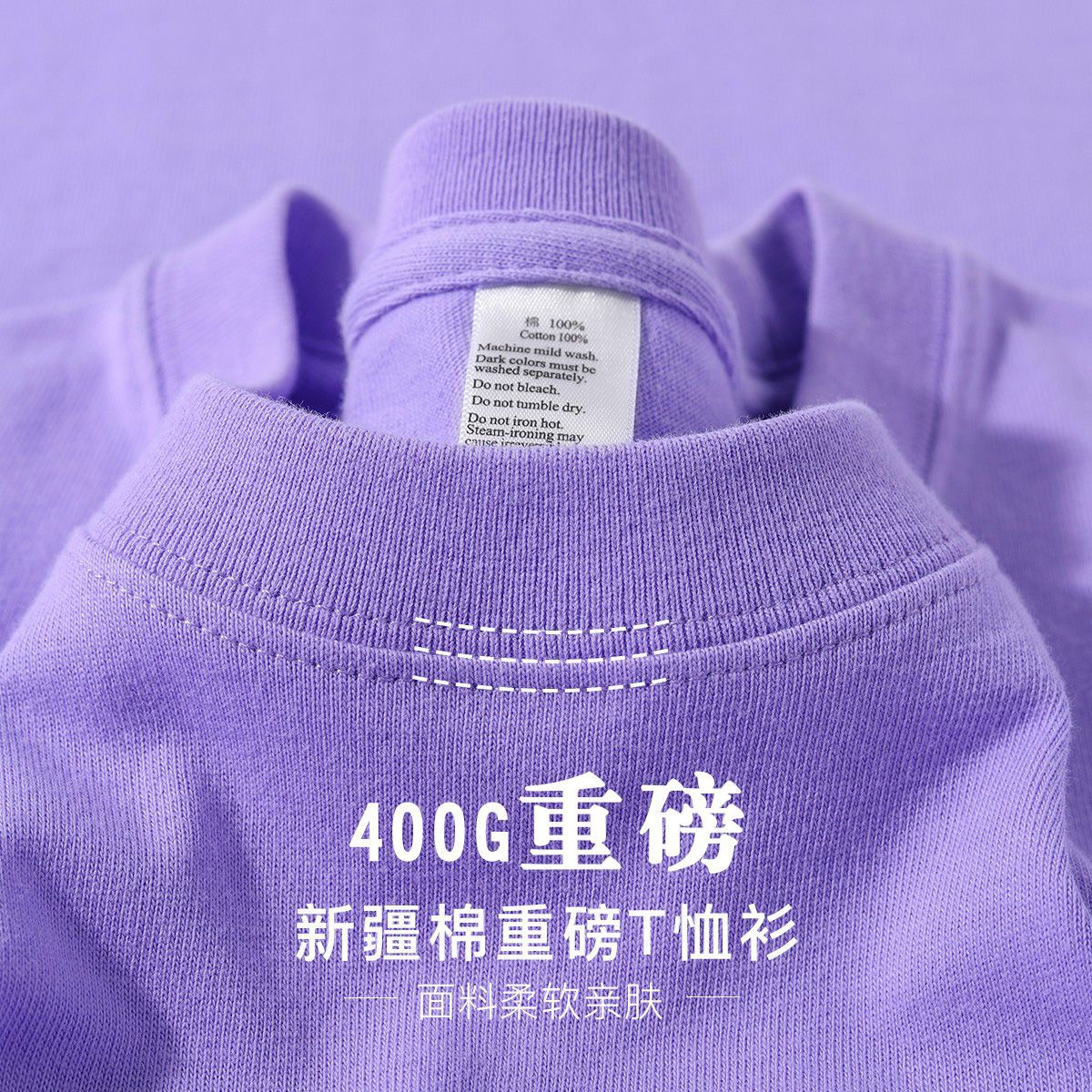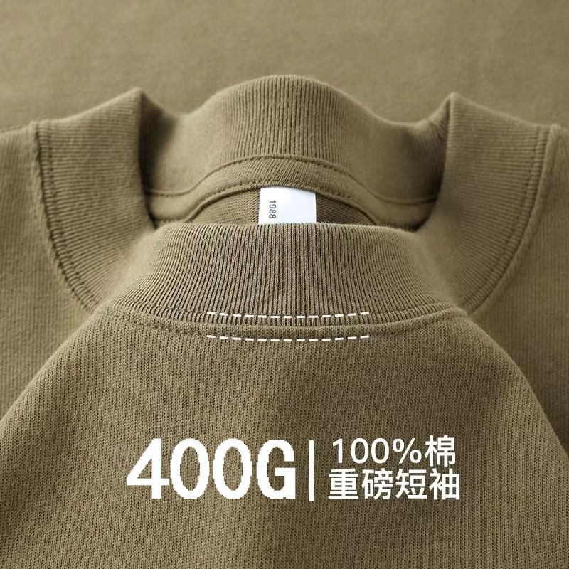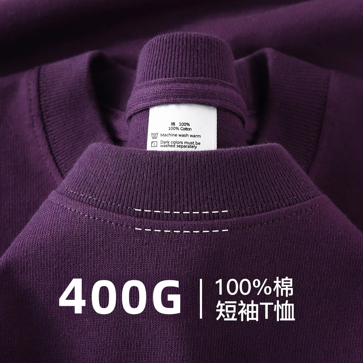400g 헤비급 티셔츠 스몰 네크라인 하이 웨이트 콤비네이션 코튼 오버사이즈 솔리드 컬러 코튼 반팔 남녀공용 다용도