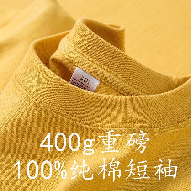 400g 헤비급 티셔츠 스몰 네크라인 하이 웨이트 콤비네이션 코튼 오버사이즈 솔리드 컬러 코튼 반팔 남녀공용 다용도스토어 가기