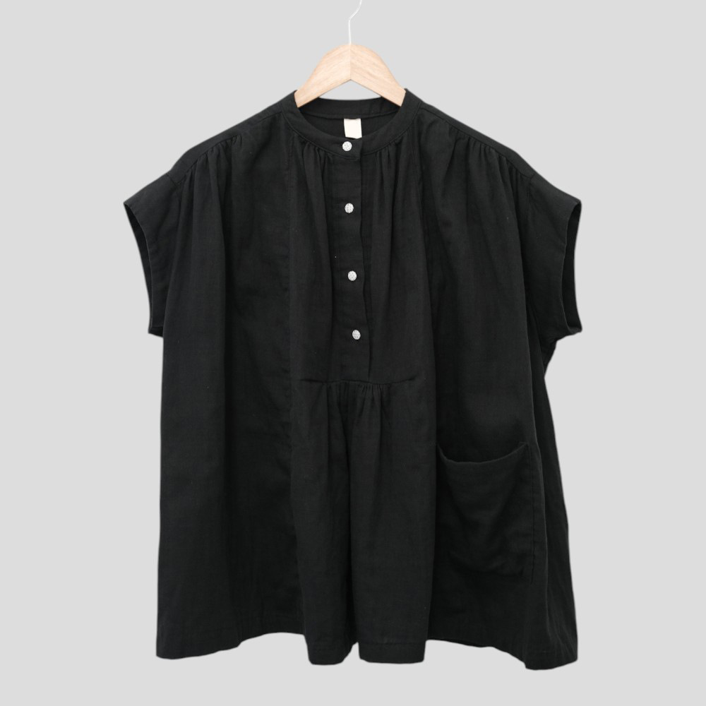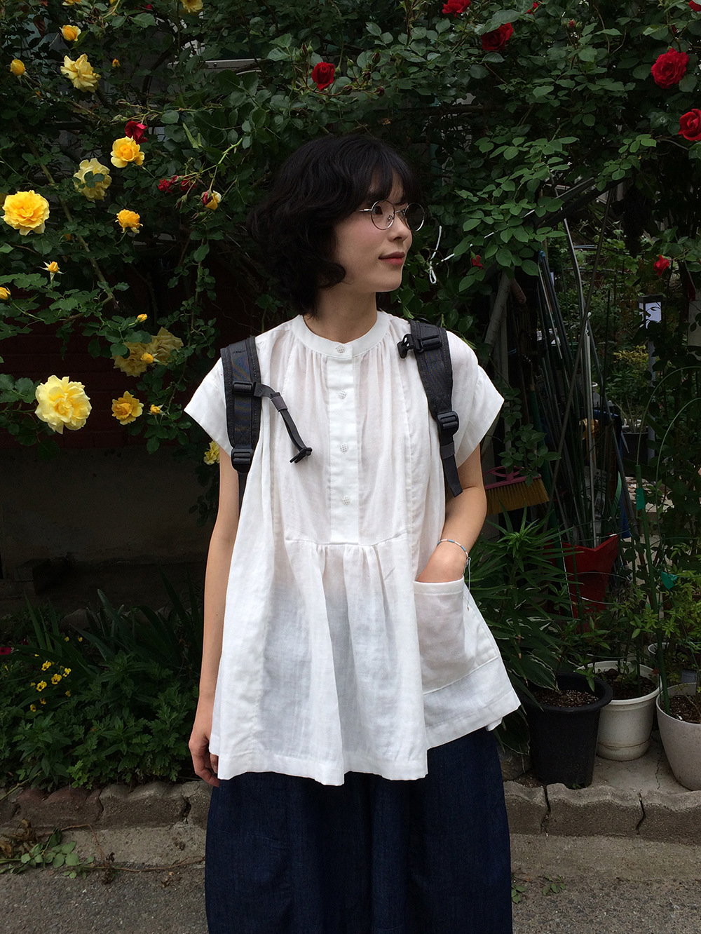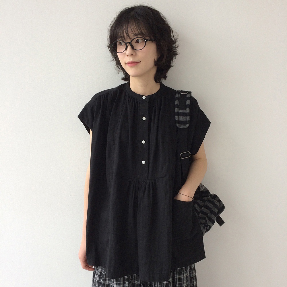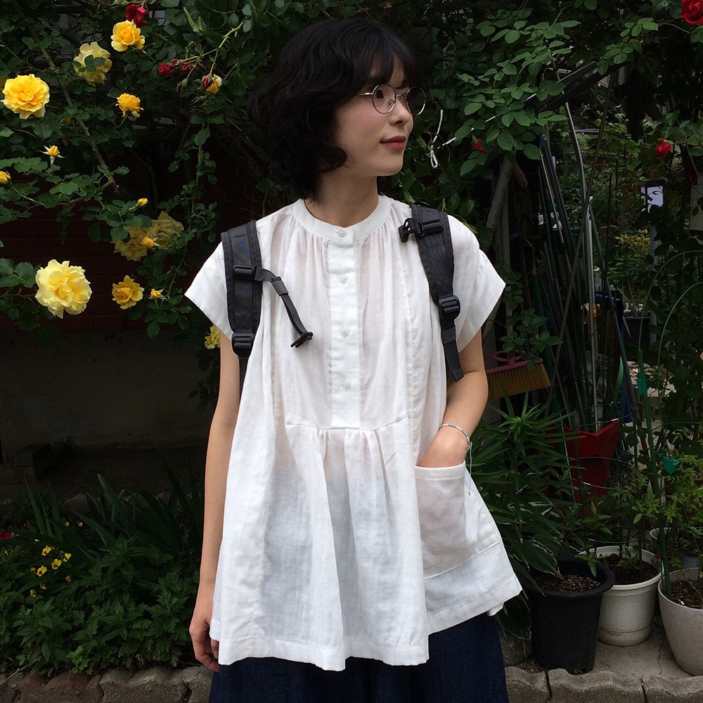 여성을위한 한국 디자인 포켓 주름 느슨한 반팔 셔츠 여성을위한 여름 새로운 스타일 프랑스 스타일 연령 감소 프릴 탑