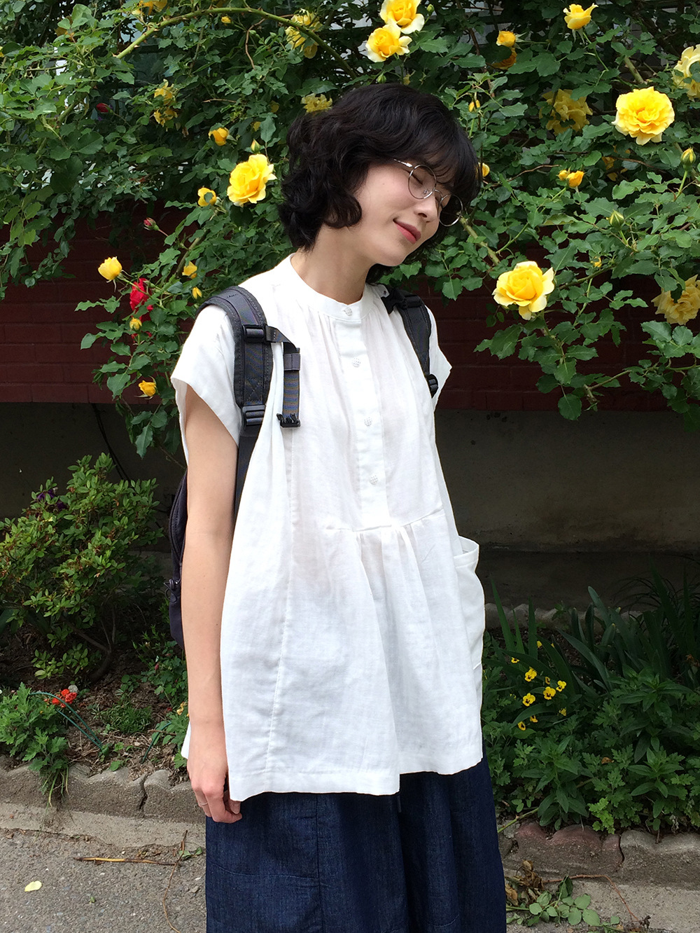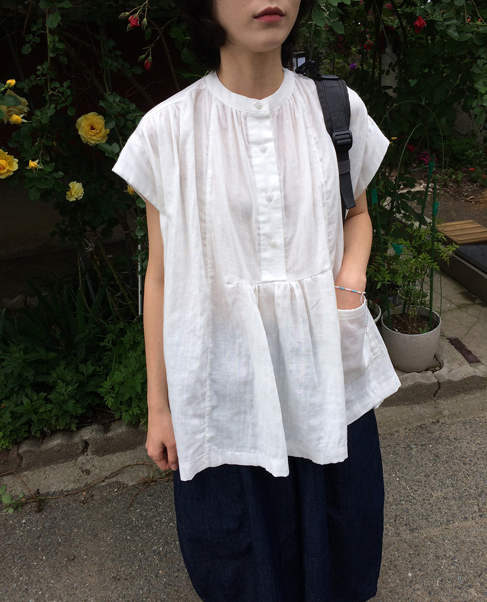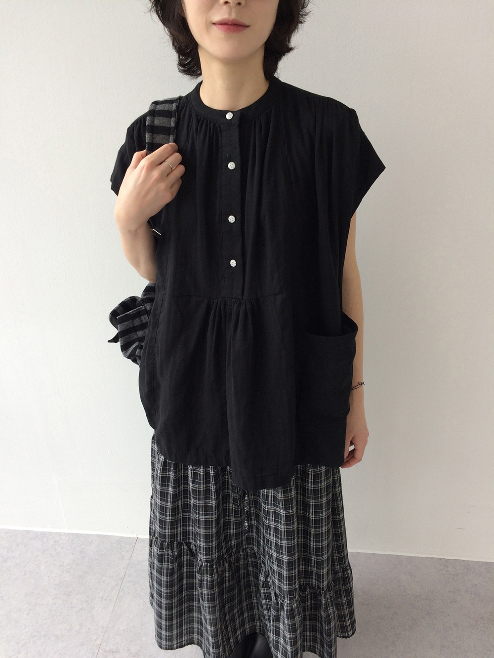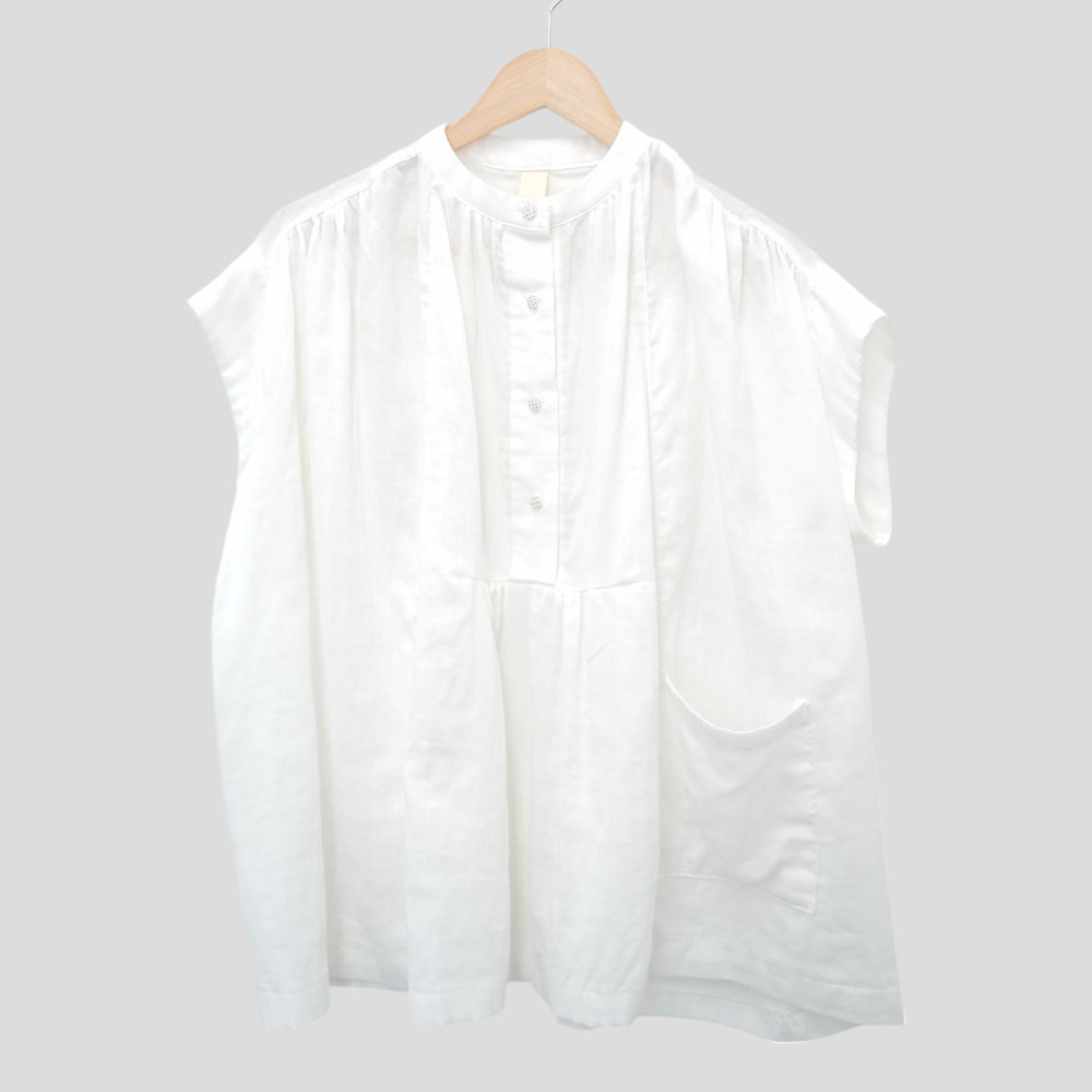 여성을위한 한국 디자인 포켓 주름 느슨한 반팔 셔츠 여성을위한 여름 새로운 스타일 프랑스 스타일 연령 감소 프릴 탑