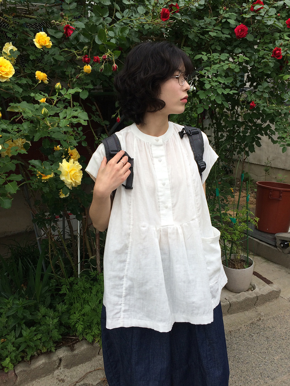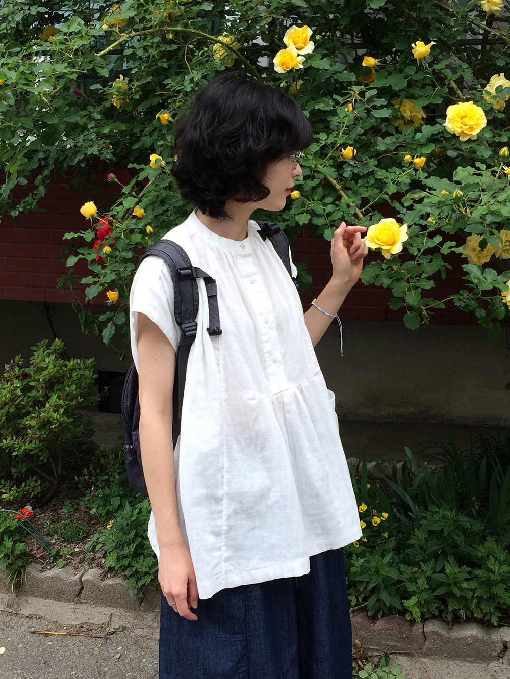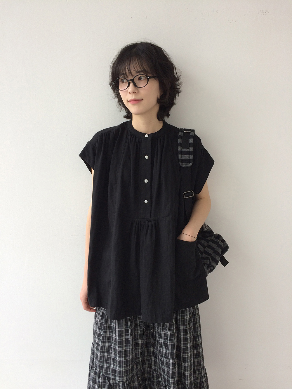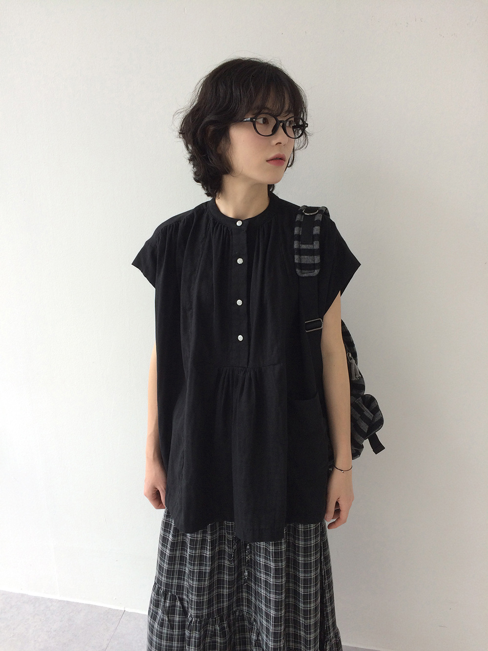 여성을위한 한국 디자인 포켓 주름 느슨한 반팔 셔츠 여성을위한 여름 새로운 스타일 프랑스 스타일 연령 감소 프릴 탑