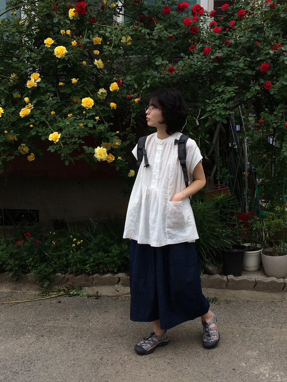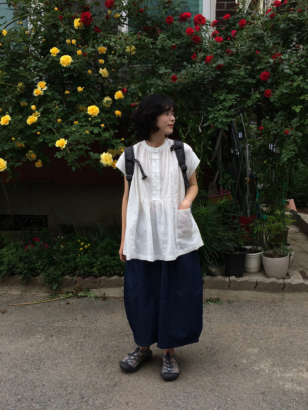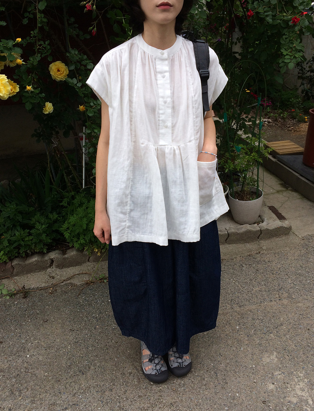 여성을위한 한국 디자인 포켓 주름 느슨한 반팔 셔츠 여성을위한 여름 새로운 스타일 프랑스 스타일 연령 감소 프릴 탑스토어 가기
