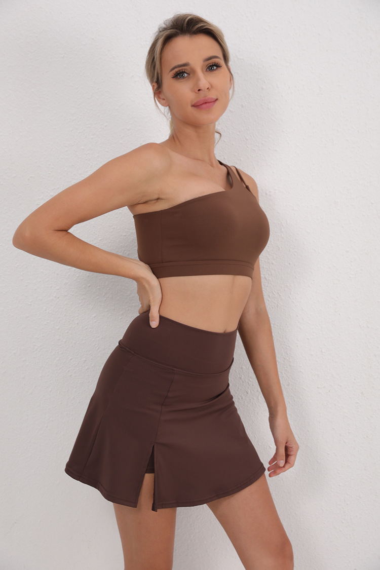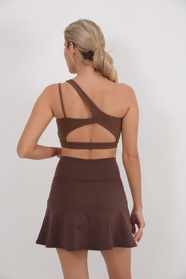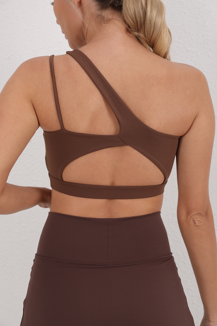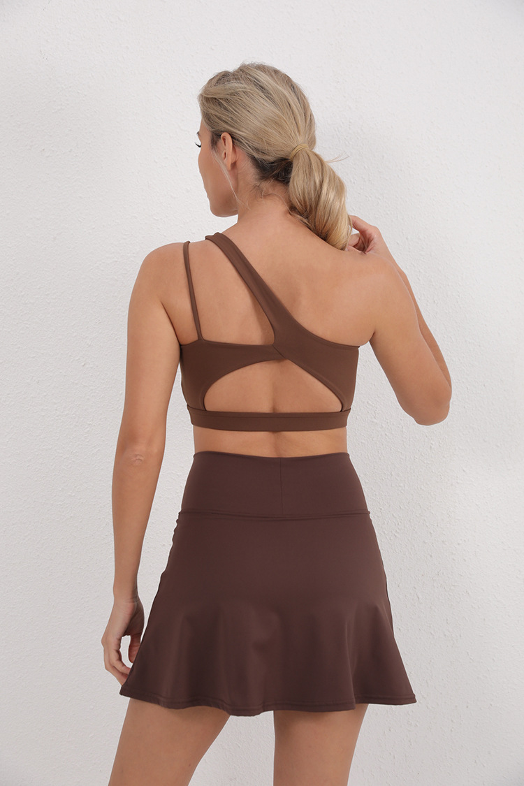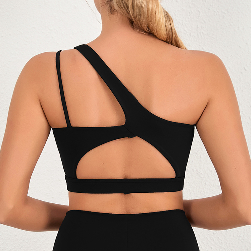 요가 스포츠 조끼, 와이어 프리 브라, 누드 충격 방지 등 브라, 불규칙한 어깨끈, 런닝 피트니스 탑