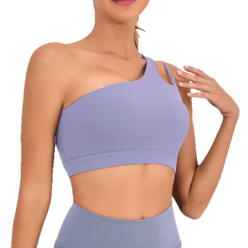 요가 스포츠 조끼, 와이어 프리 브라, 누드 충격 방지 등 브라, 불규칙한 어깨끈, 런닝 피트니스 탑스토어 가기