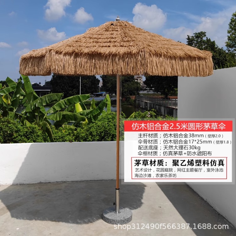 • 2.5m 라운드 모조 목재 알루미늄 합금 초가 우산