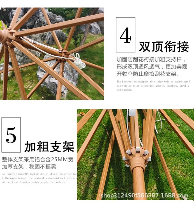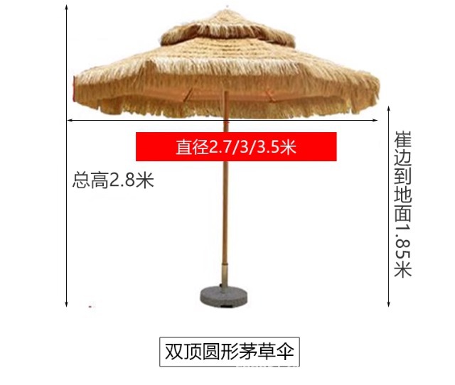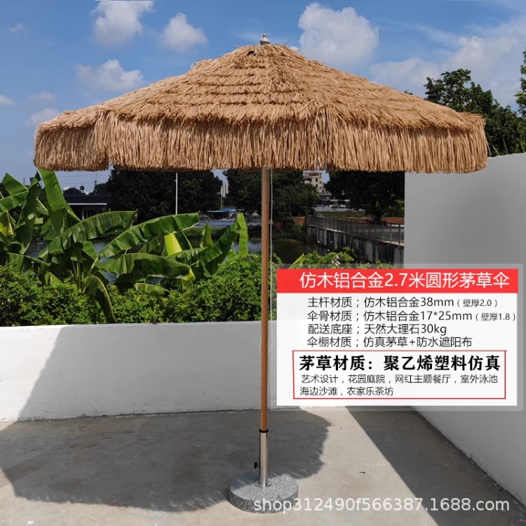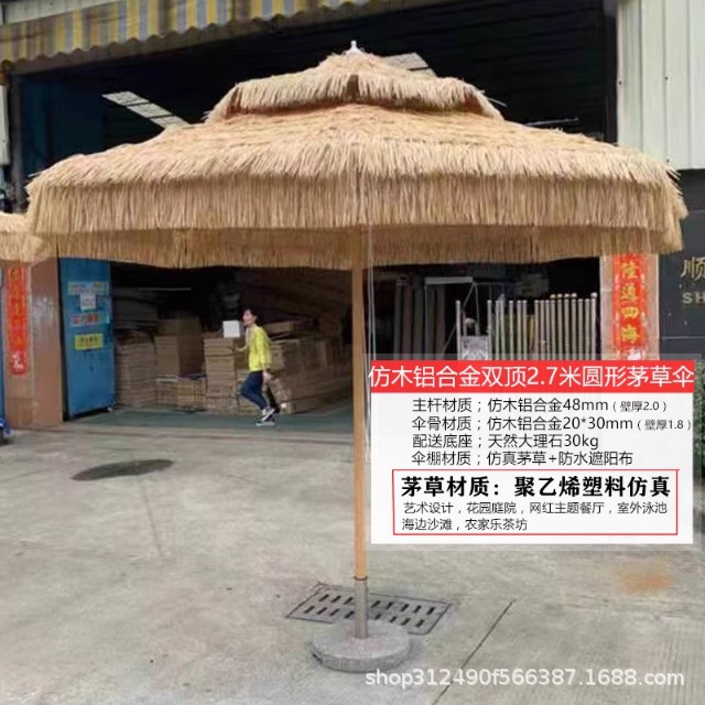 • 2.7m 라운드 더블 탑 모조 목재 알루미늄 합금 초가 우산