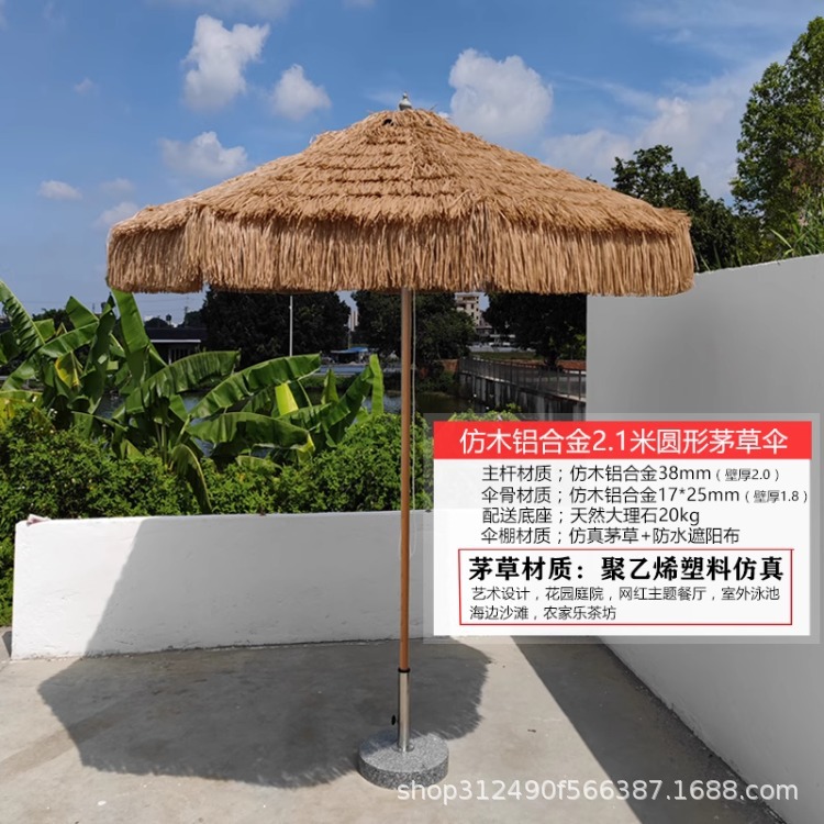 • 2.1m 라운드 모조 목재 알루미늄 합금 초가 우산
