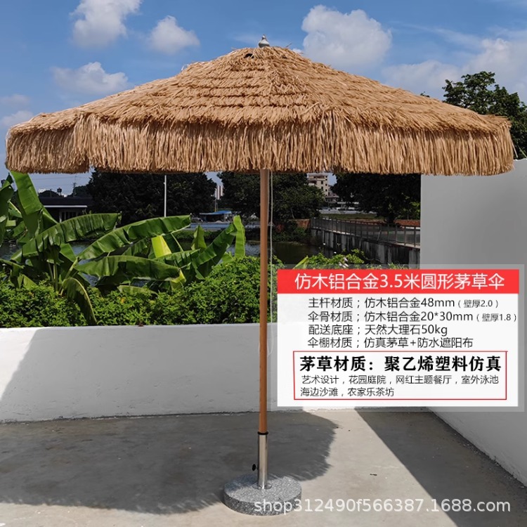 • 3.5m 라운드 모조 목재 알루미늄 합금 초가 우산
