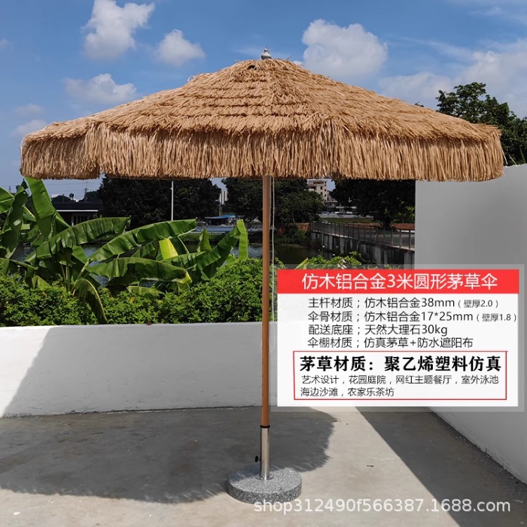 • 3m 라운드 모조 목재 알루미늄 합금 초가 우산
