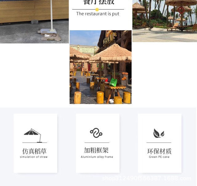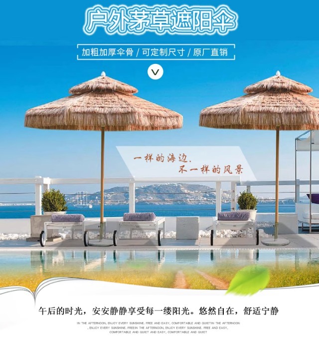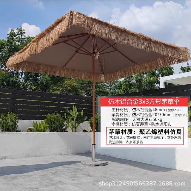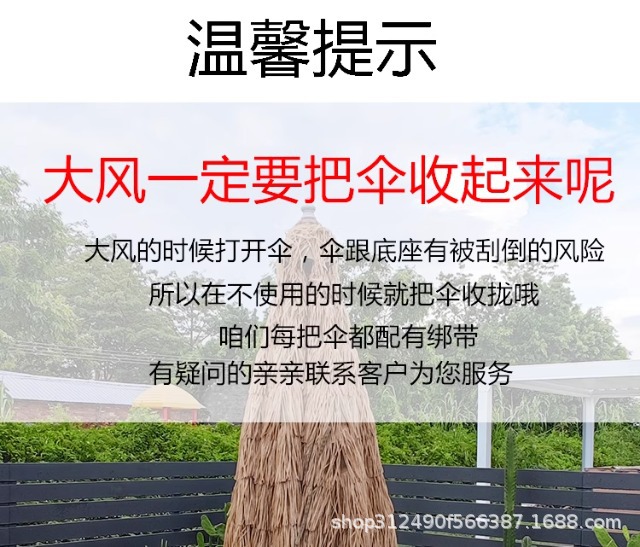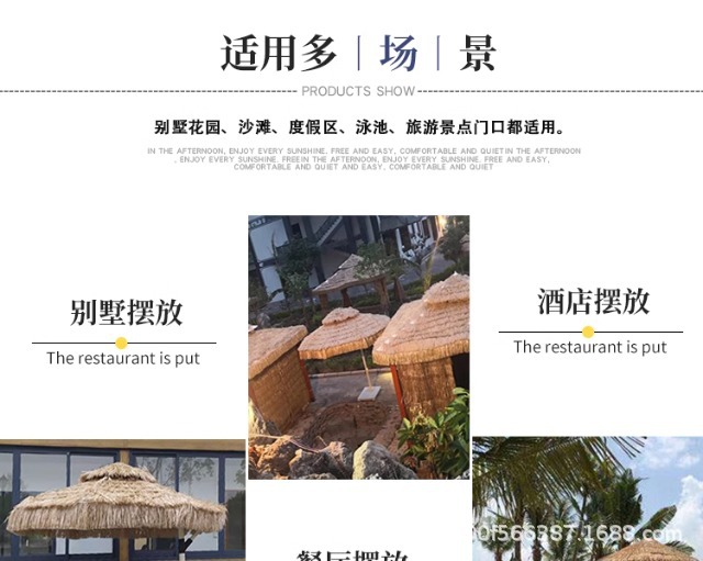야외 시뮬레이션 밀짚 우산 빌라 안뜰 정원 짚 우산 야외 스톨 상업용 파라솔 풍경 해변 우산스토어 가기