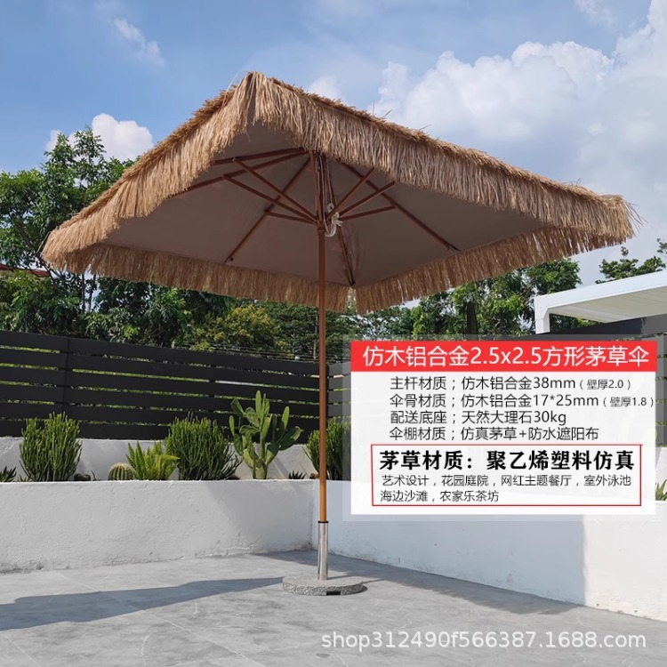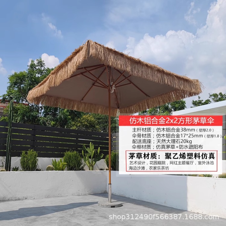 • 2m 평방 미터 모조 목재 알루미늄 합금 초가 우산