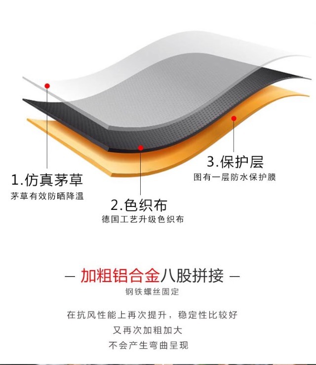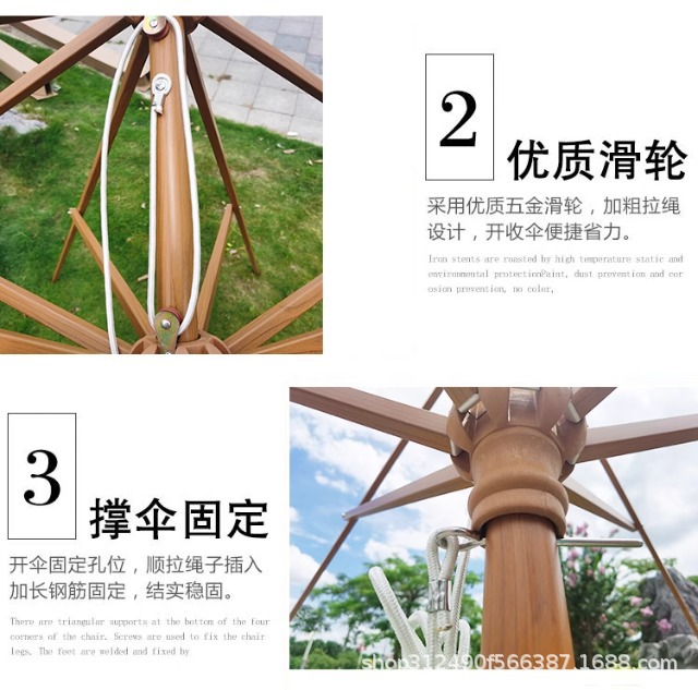 • 2.7m 라운드 모조 목재 알루미늄 합금 초가 우산