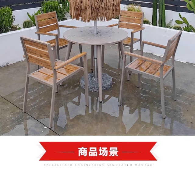 • 플라스틱 목재 의자 4개 + 전체 알루미늄 테이블 90개 + 우산 2.7m개