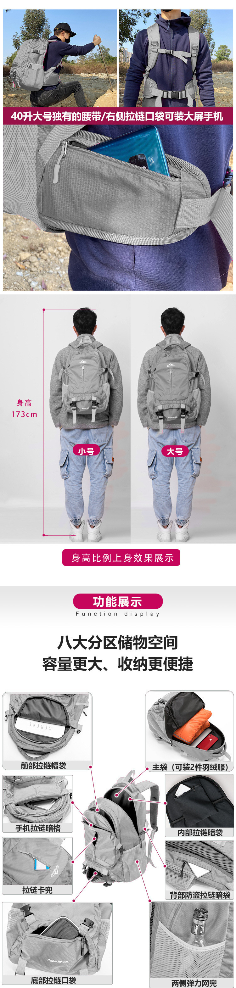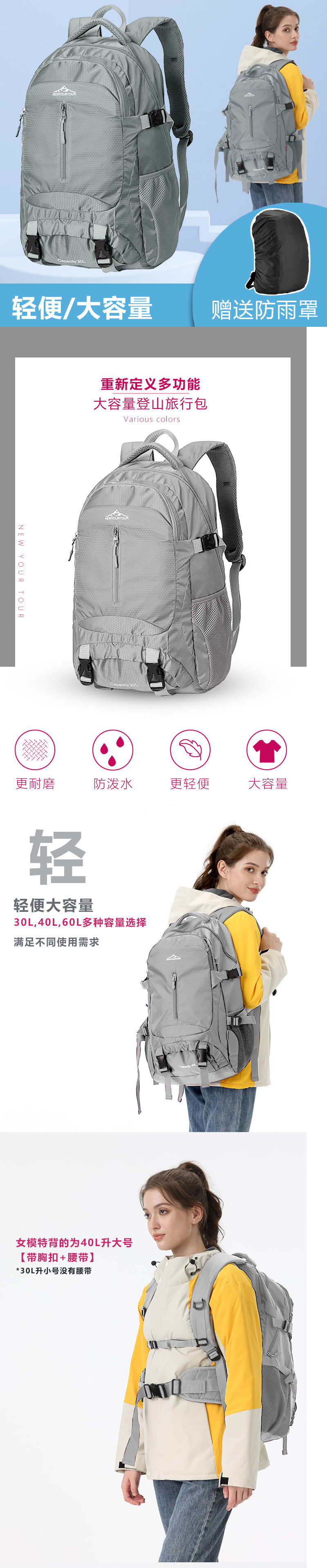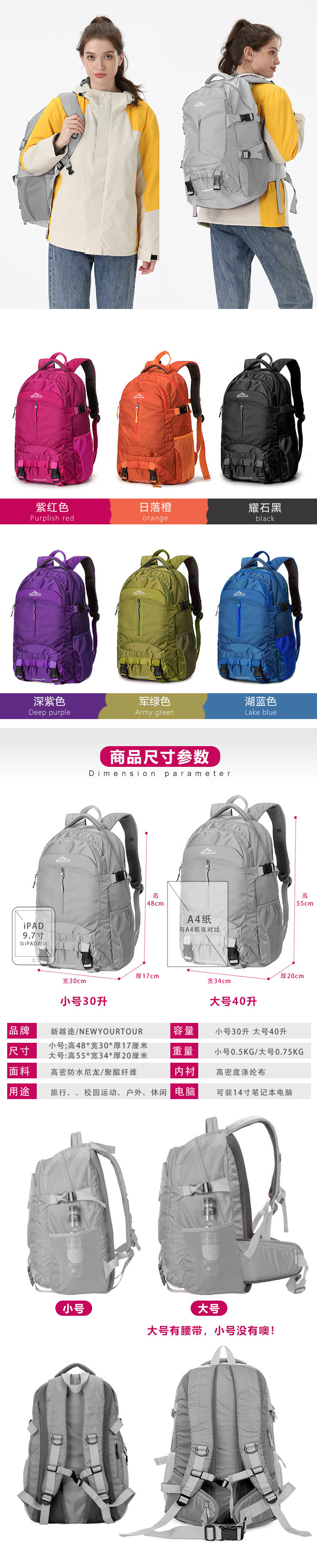 등산 가방 여성용 배낭 남성용 여행 경량 야외 하이킹 레저 방수 대용량 배낭스토어 가기