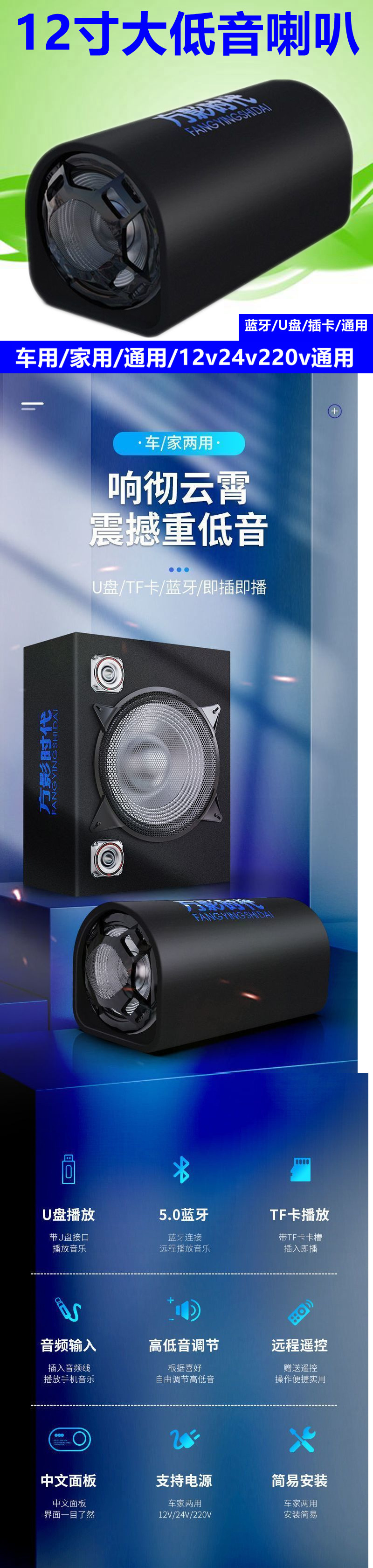 12inch 자동차 서브 우퍼 12v24v220v 홈 중저음 휴대 전화 블루투스 오디오 자동차 컴퓨터 스피커스토어 가기