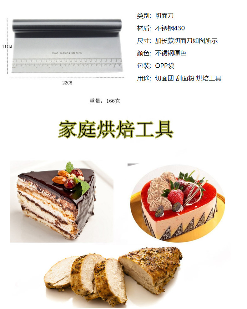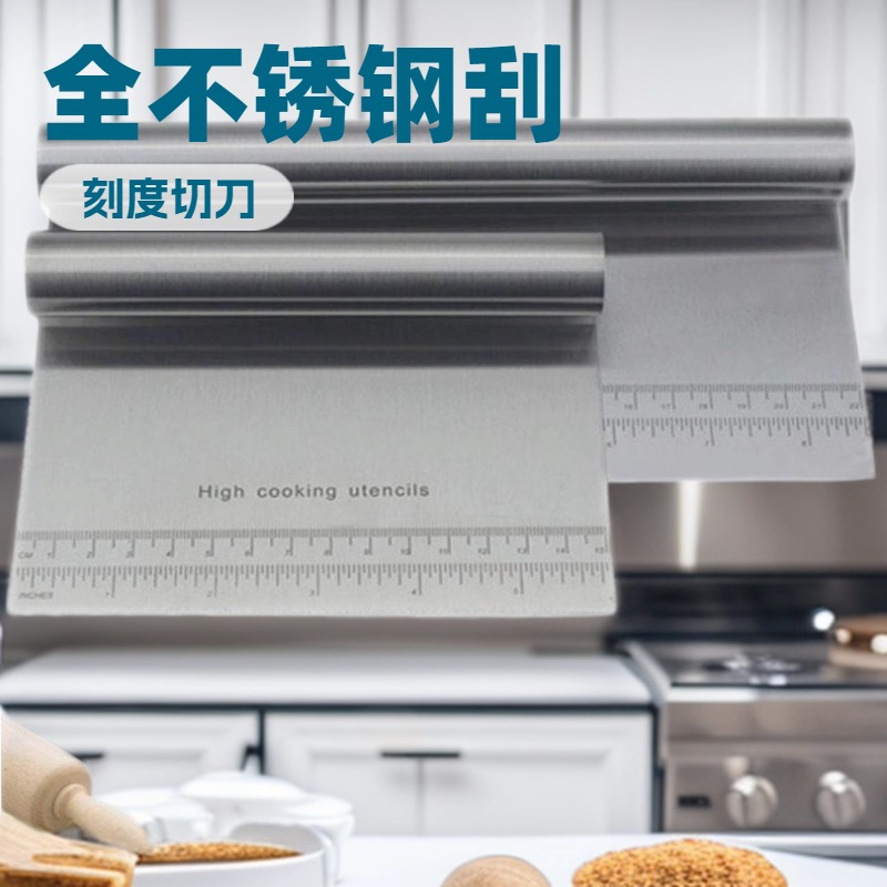 긴형 올스테인리스 스테인레스 눈금형 베이킹 스크레이퍼, 상업용 베이킹 커팅 나이프, 주방 정밀 측정 스크레이퍼