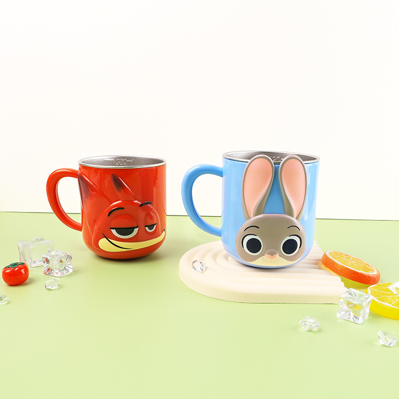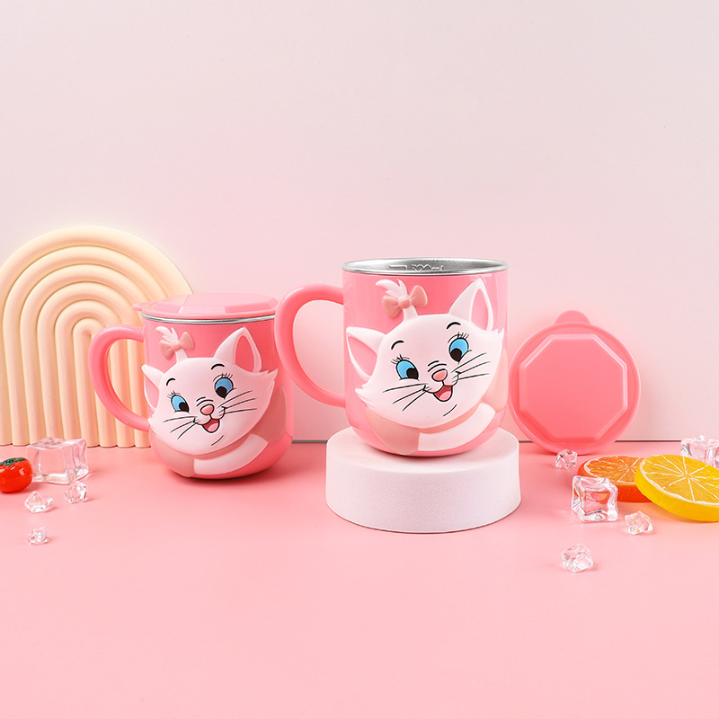 어린이 물컵, 낙하 방지, 가정용 스테인리스 물컵, 유치원 아기 우유컵, 눈금 포함