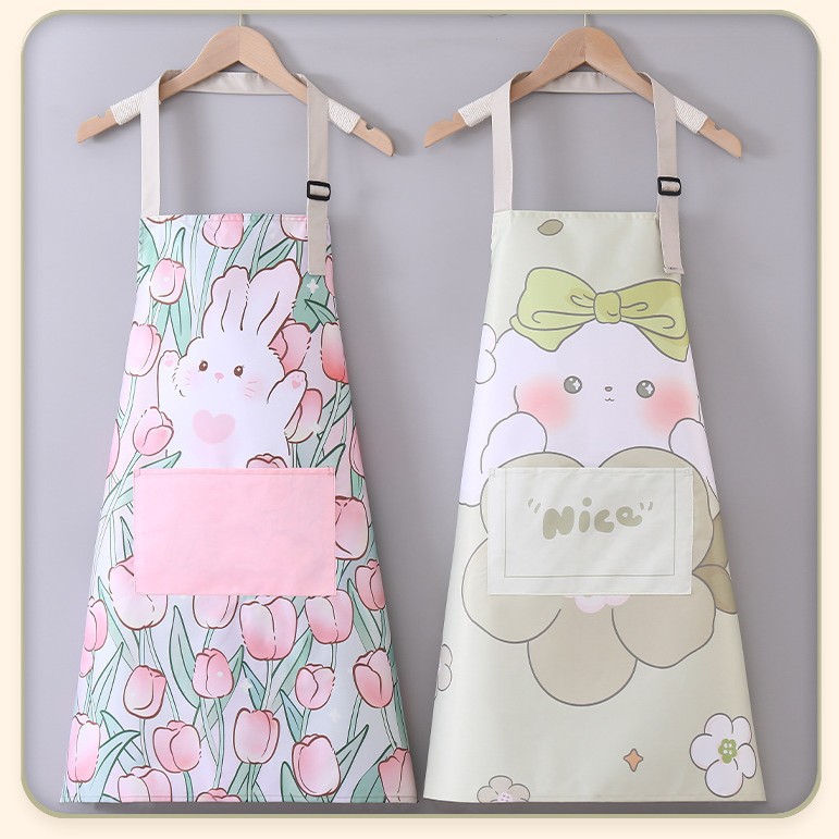 방수 만화 토끼 무늬 앞치마, 주방 얼룩 방지 가정용 허리 앞치마, 요리용 민소매 앞치마, 도매스토어 가기