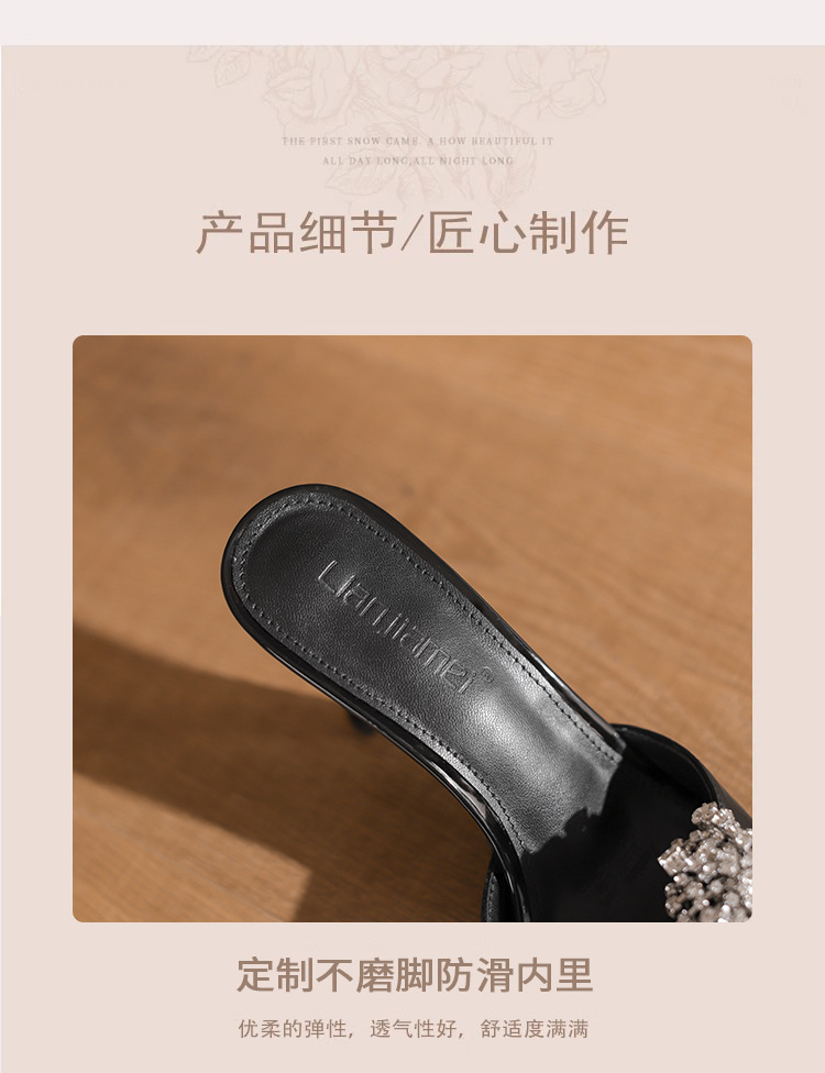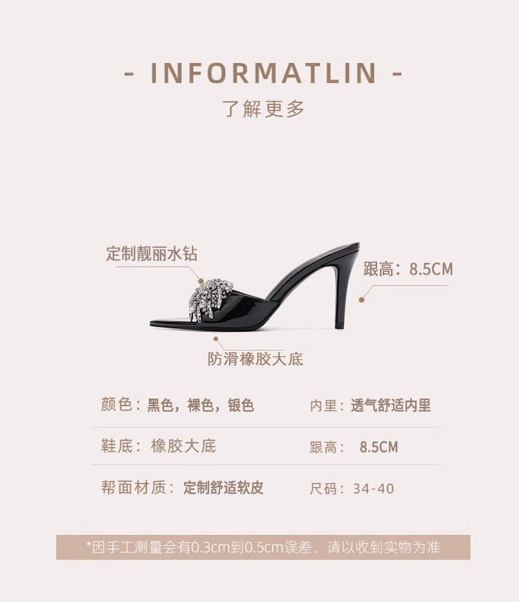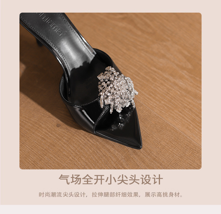 2025년 신상 여름 스타일 포인티드 토 불꽃놀이 버클 라인스톤 샌들, 여성용 스틸레토 힐, 오픈토 하이힐, 하프 슬리퍼, 패셔너블하고 활용도가 높은 아우터웨어스토어 가기