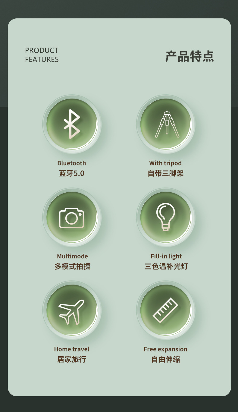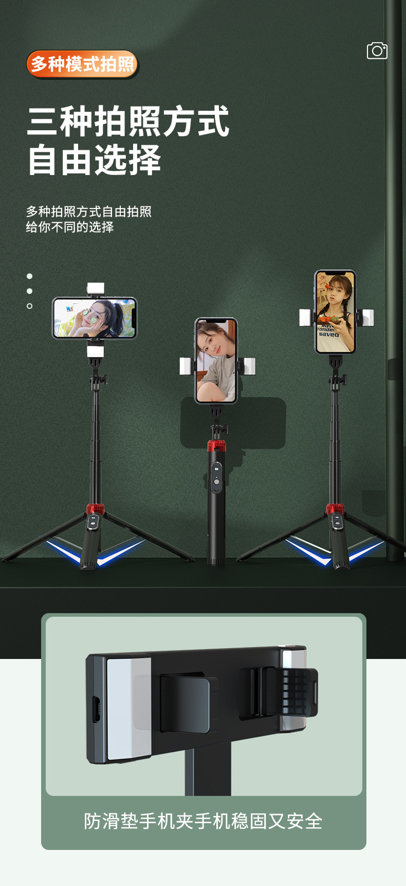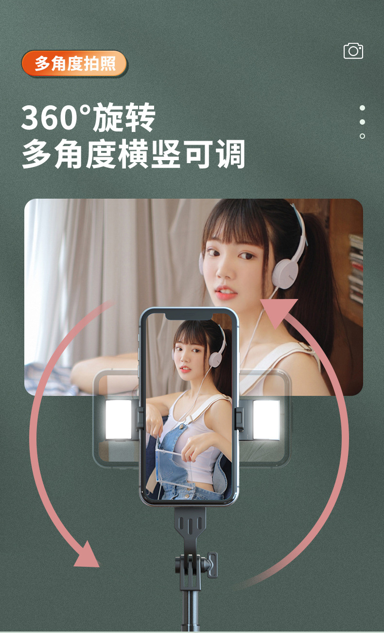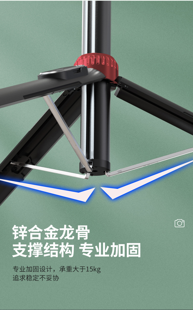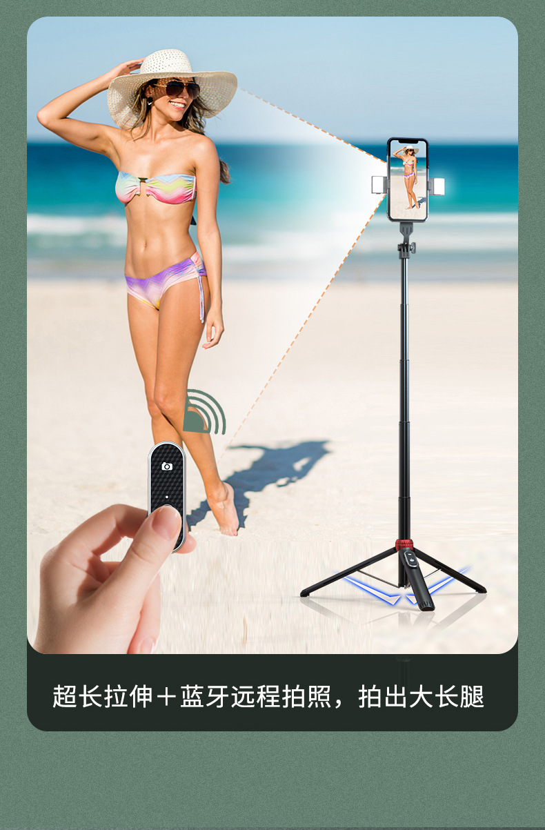 蓝牙遥控补光灯铝合金管三脚架1.6米自拍杆 手机直播支架 P160