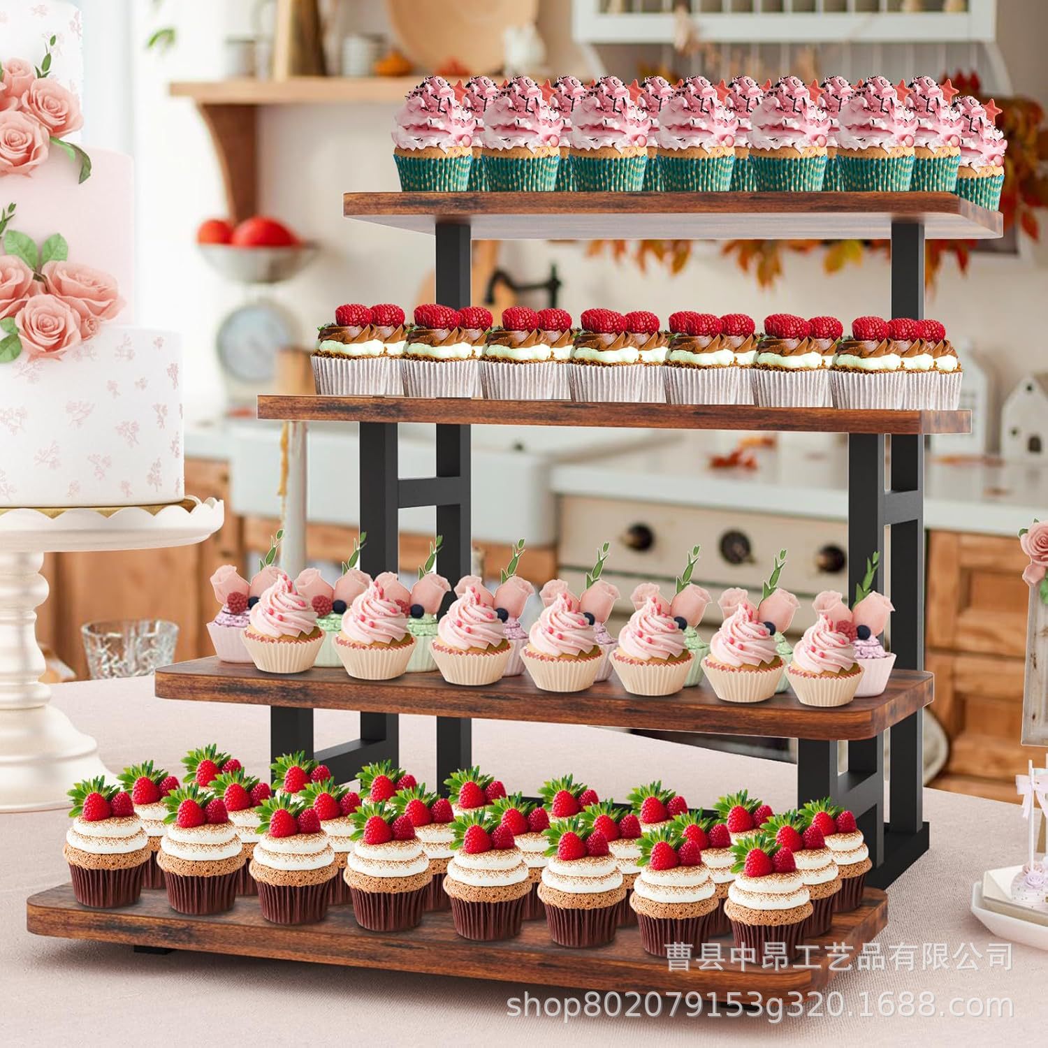 국경을 넘는 엄선된 목재 다층 보관 랙 케이크 디저트 스낵 데스크탑 정리 보관 랙