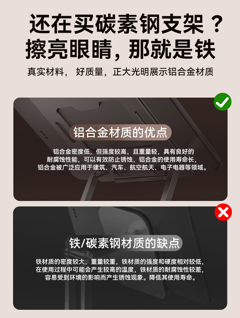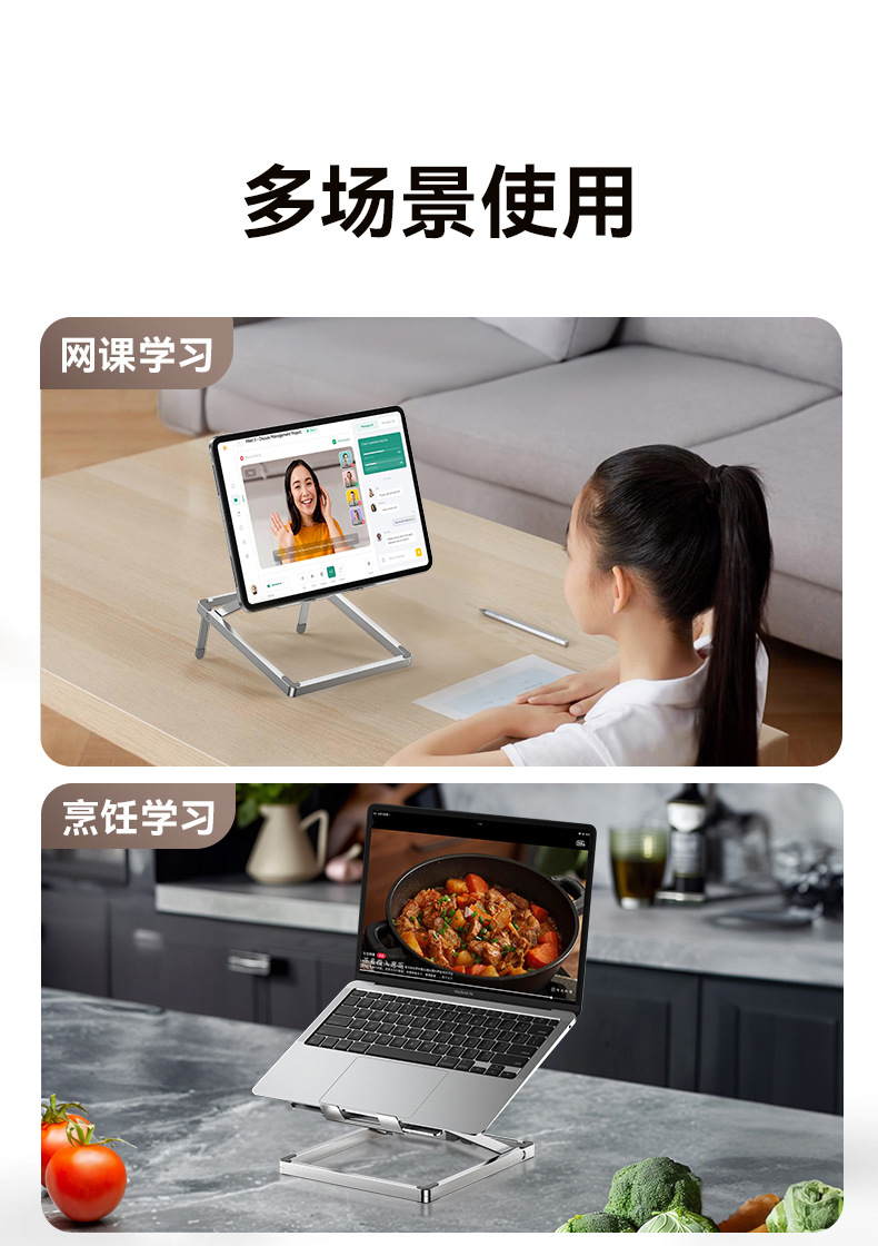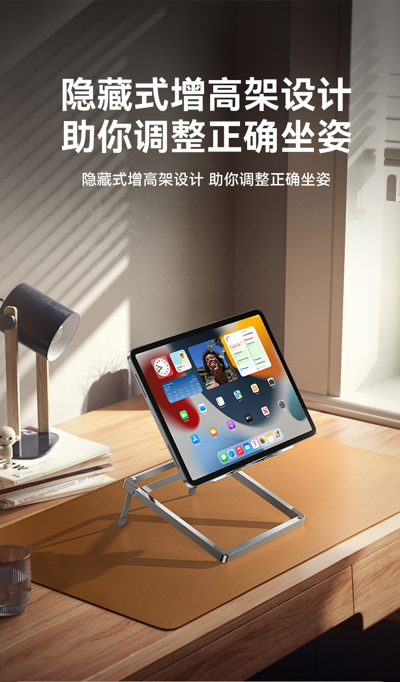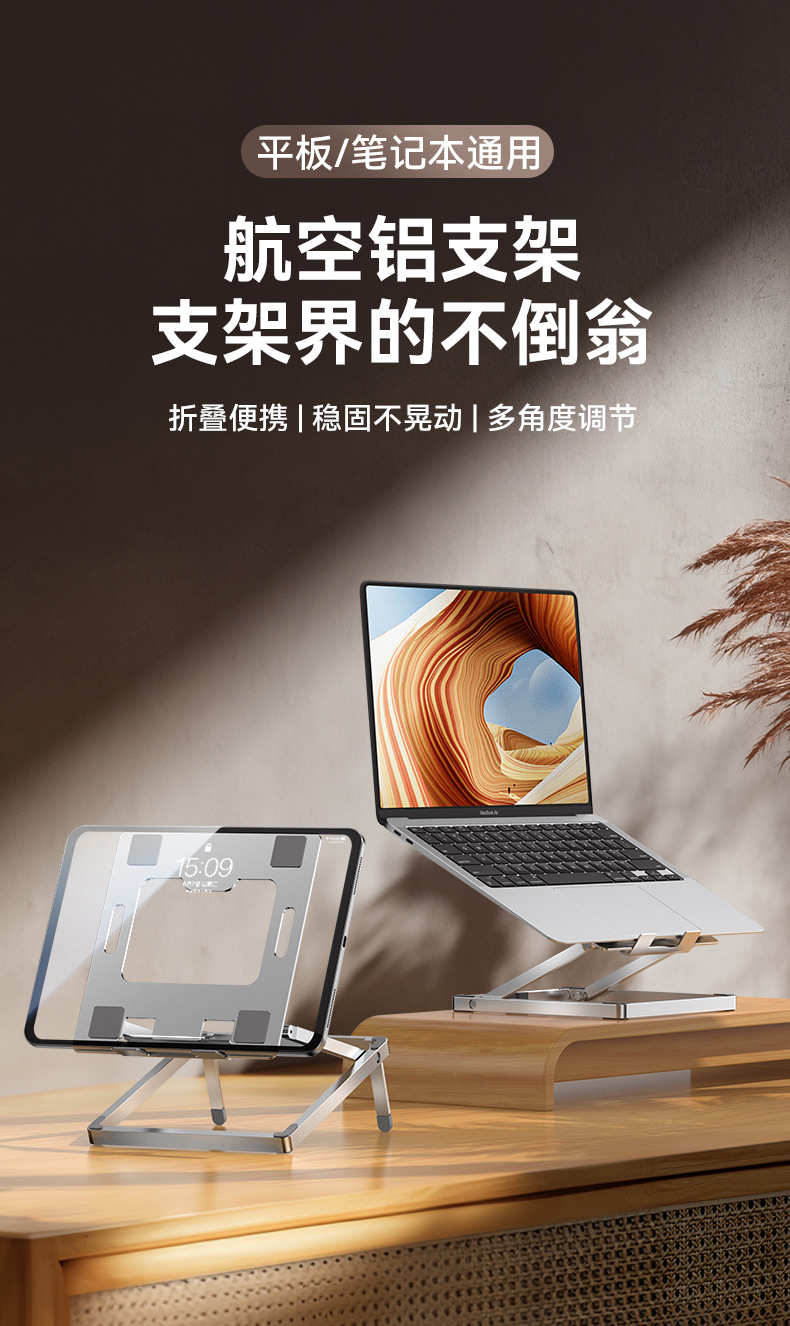 새로운 노트북 스탠드 초박형 휴대용 알루미늄 합금 태블릿 지원 냉각 데스크탑 접이식 높이 스탠드