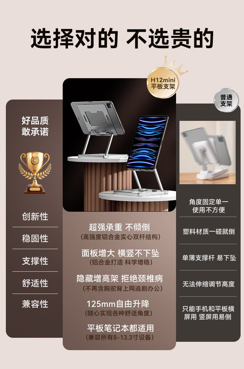 • H12mini 휴대폰 태블릿 홀더 - 알루미늄 합금 - 실버