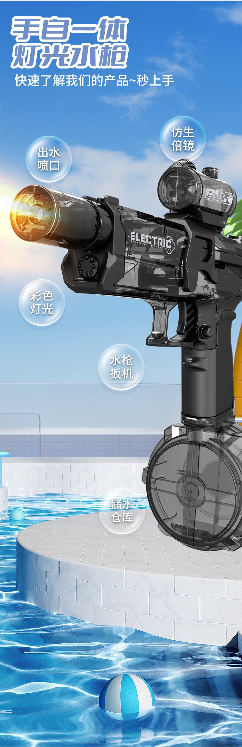 • 아이스 마우스 전기 물총 [블루] 영어 컬러 박스