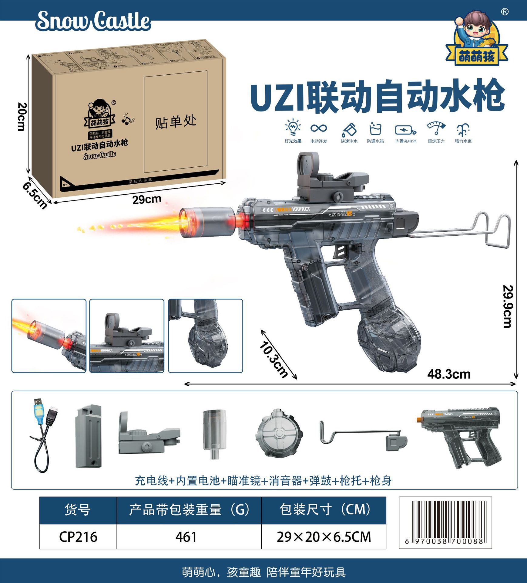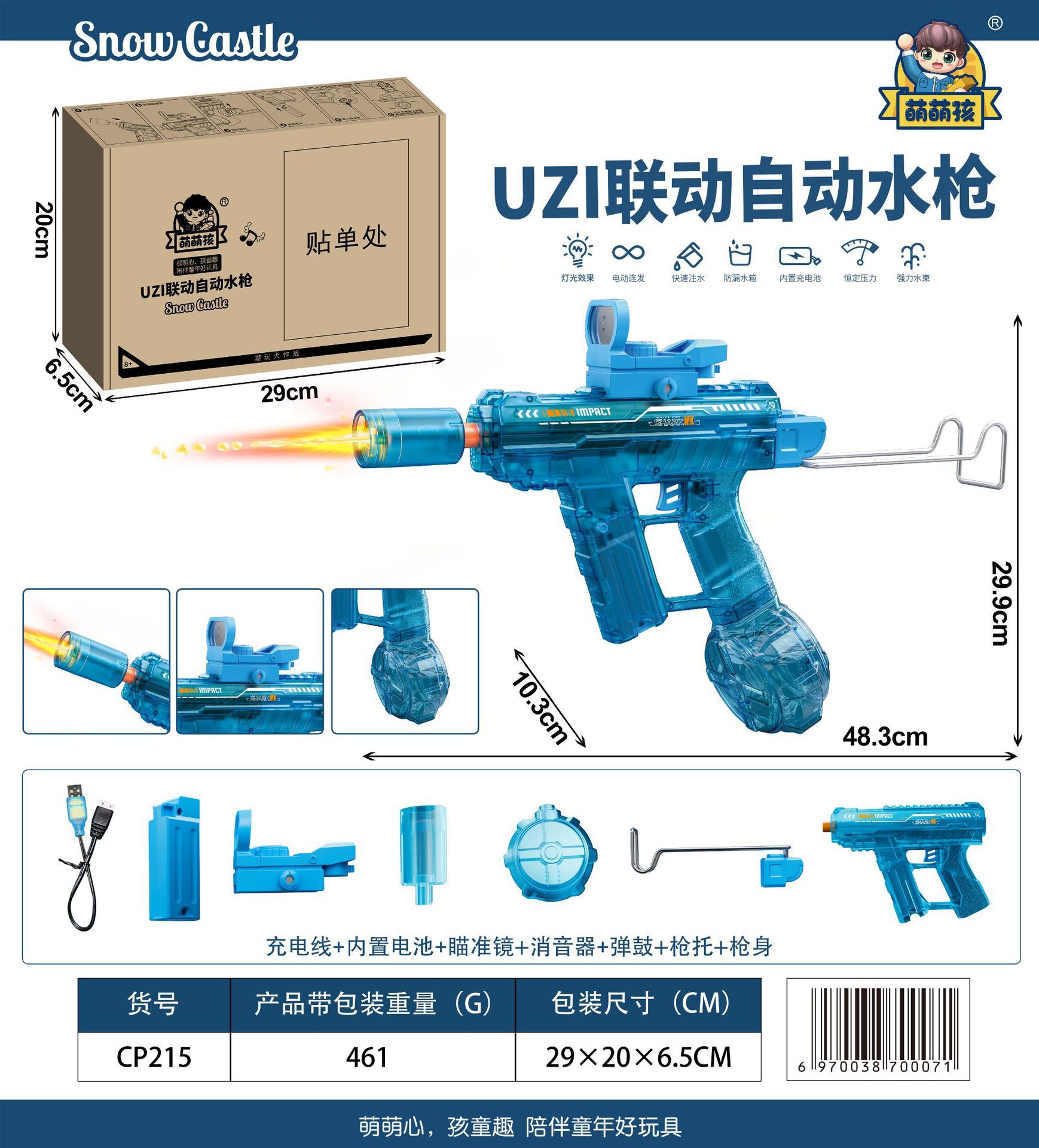 • UZI 연동 자동 물총 [블루] 영어 컬러 박스