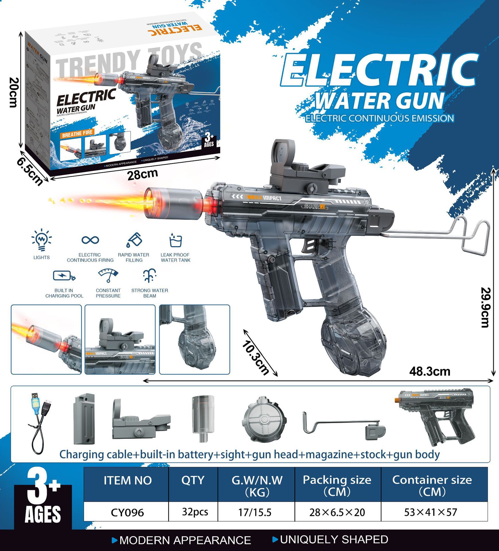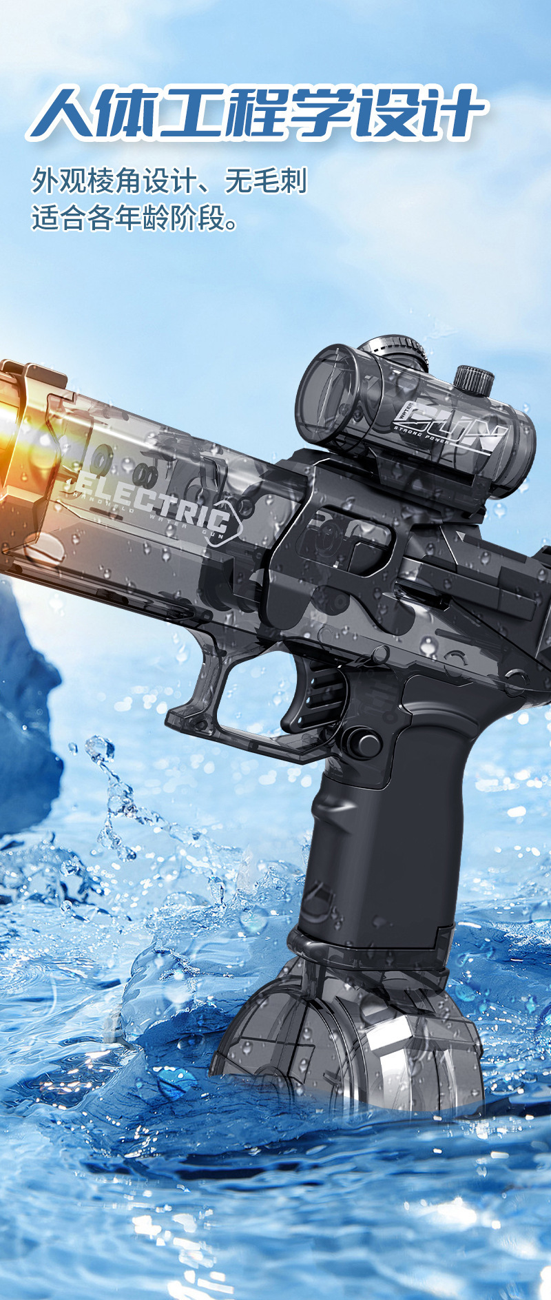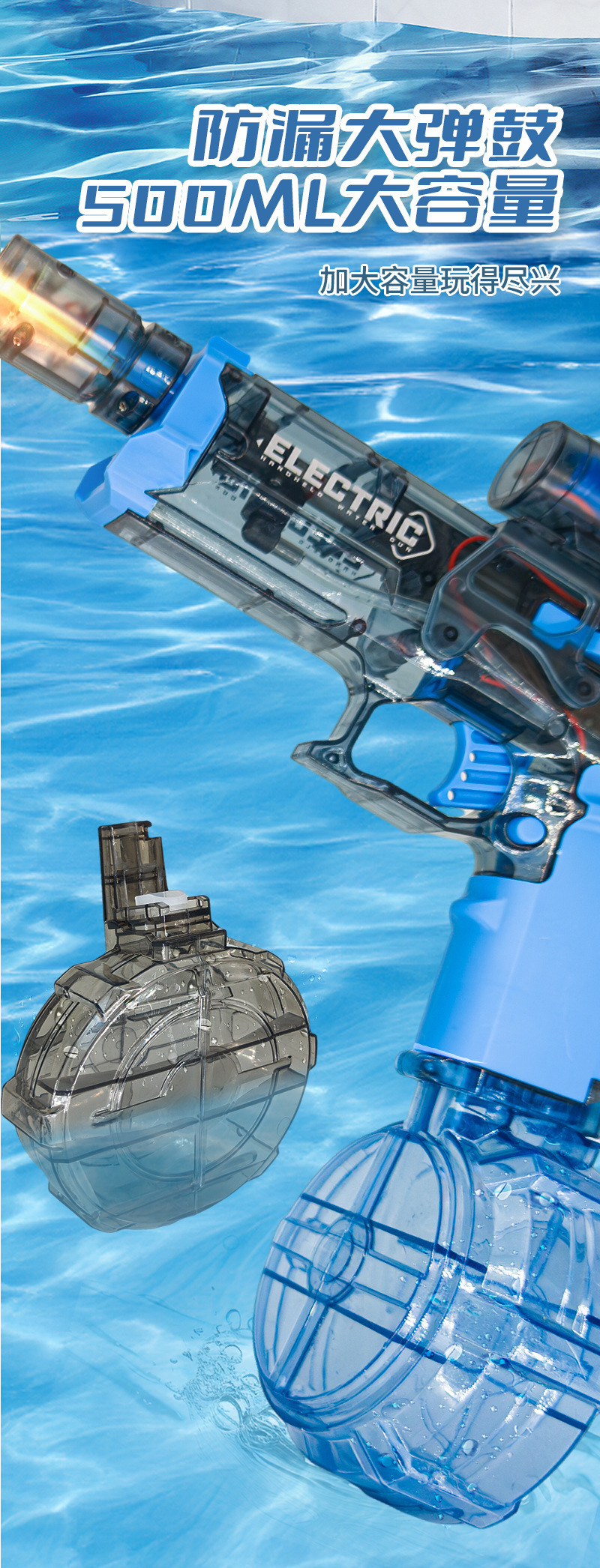 국경 간 인기 판매 어린이의 새로운 기술 물총 전기 장난감 물 스프레이 연속 고압 강력한 얼음 쥐 대용량
