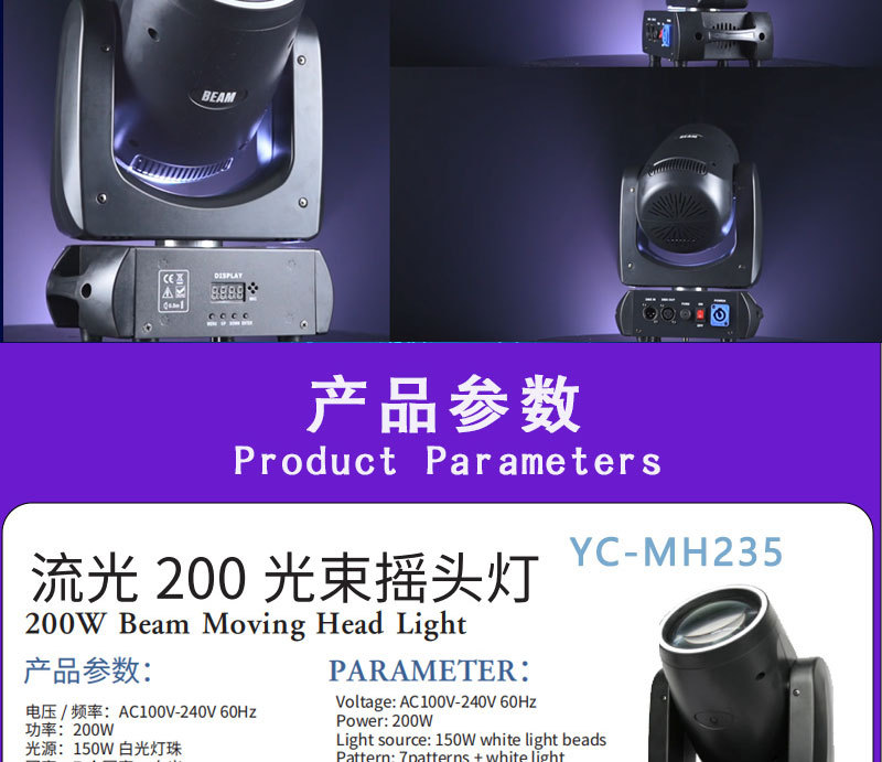 크로스보더 LED200W 빔 라이트 패턴 라이트 무빙 헤드 라이트 보조 조명 바 디스코 라이트 KTV 무대 조명