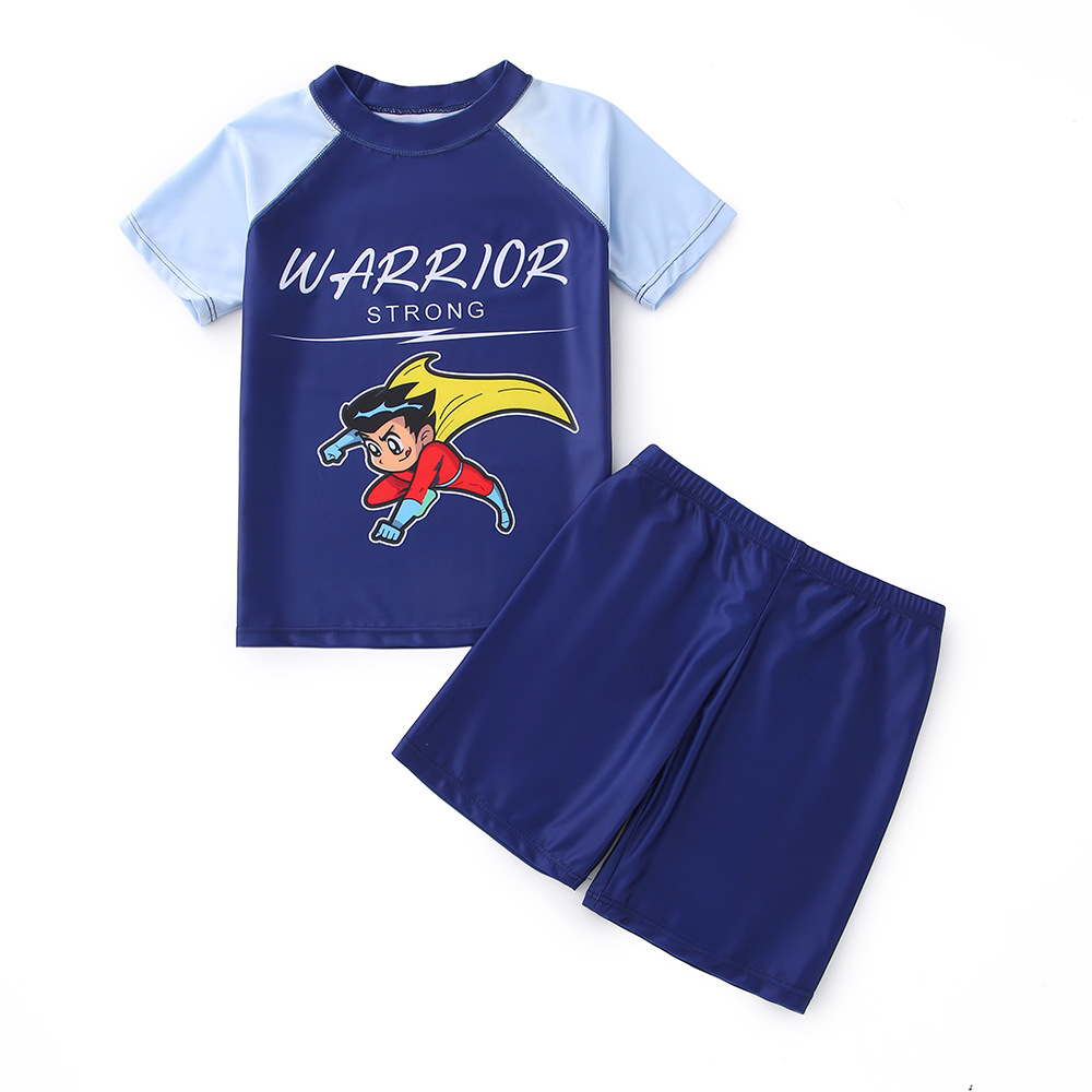 소년 만화 슈퍼맨 프린트 스플릿 수영복 세트 해변 해변 휴가 물 속 건조 라글란 슬리브 수영복