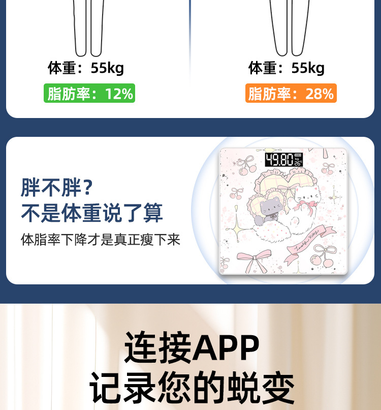 국경 간 도매 인체 저울 전문 저울 지능형 다기능 체지방 저울 가정용 소형 전자 저울 충전식 체중 저울