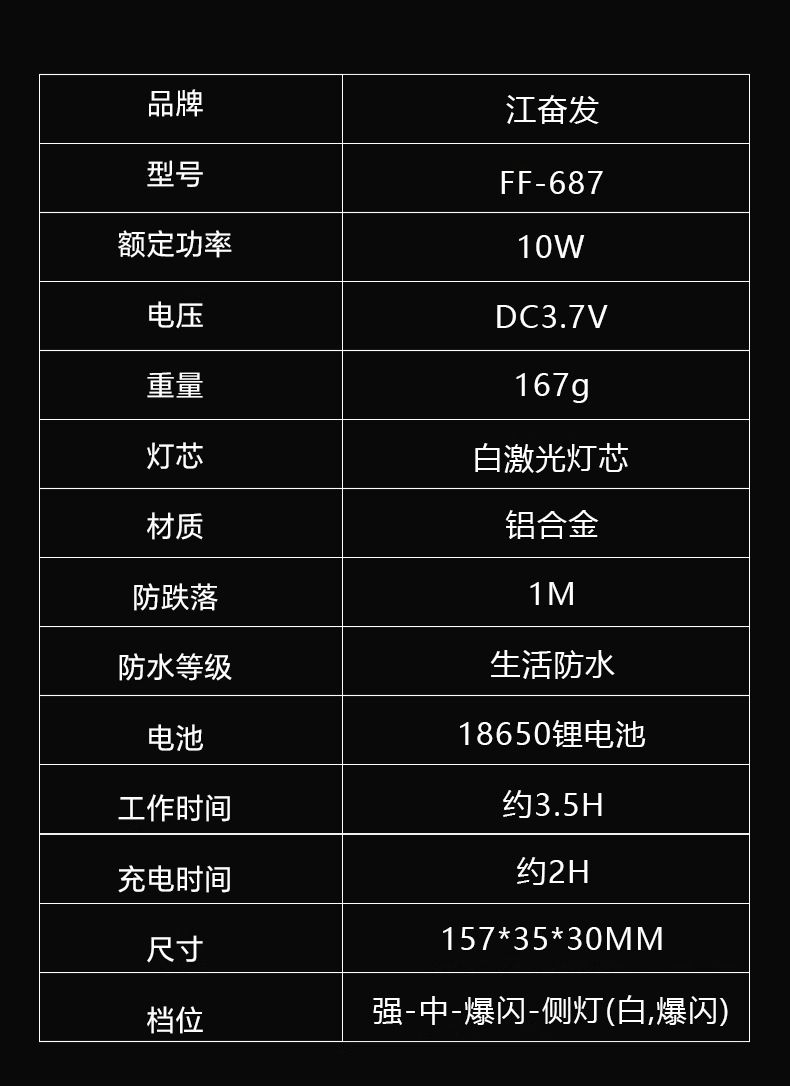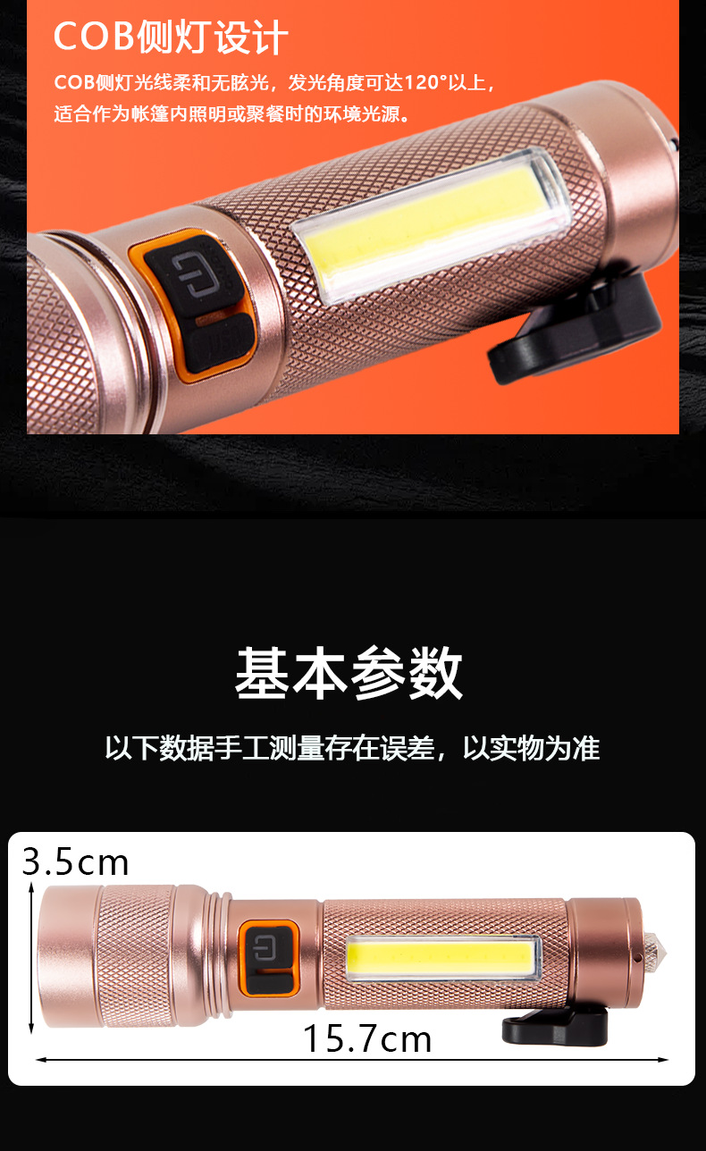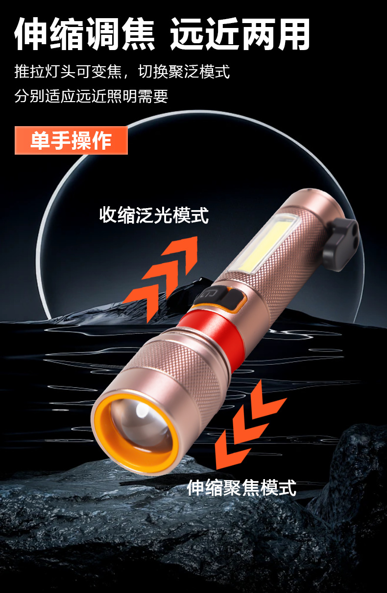 다기능 국경 간 인기 흰색 레이저 총 COB 작업 조명 텔레스코픽 줌 장거리 강한 빛 비상 손전등스토어 가기