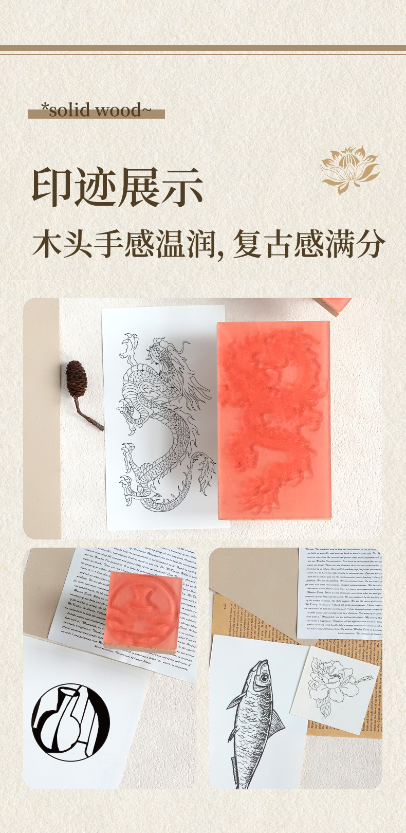 대형 나무 스탬프, 나무 손잡이, 간단한 핸드북 스탬프, 조각 패턴, 고무 고무 나무 스탬프