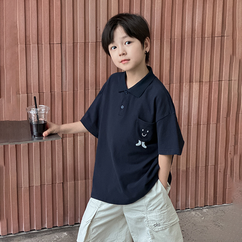 Elmo Beibei 어린이 웃는 얼굴 자수 반팔 티셔츠 2025 여름 남성 중년 및 노년 아동 잘 생긴 면 통기성 폴로 셔츠스토어 가기