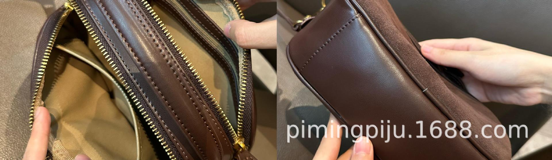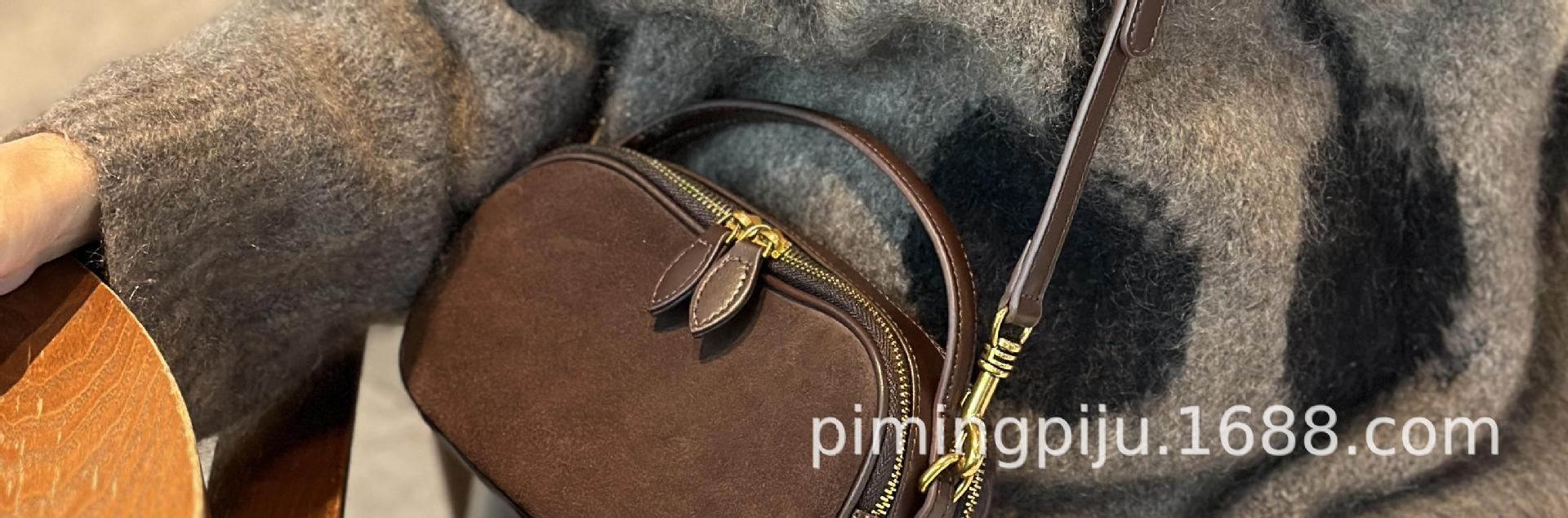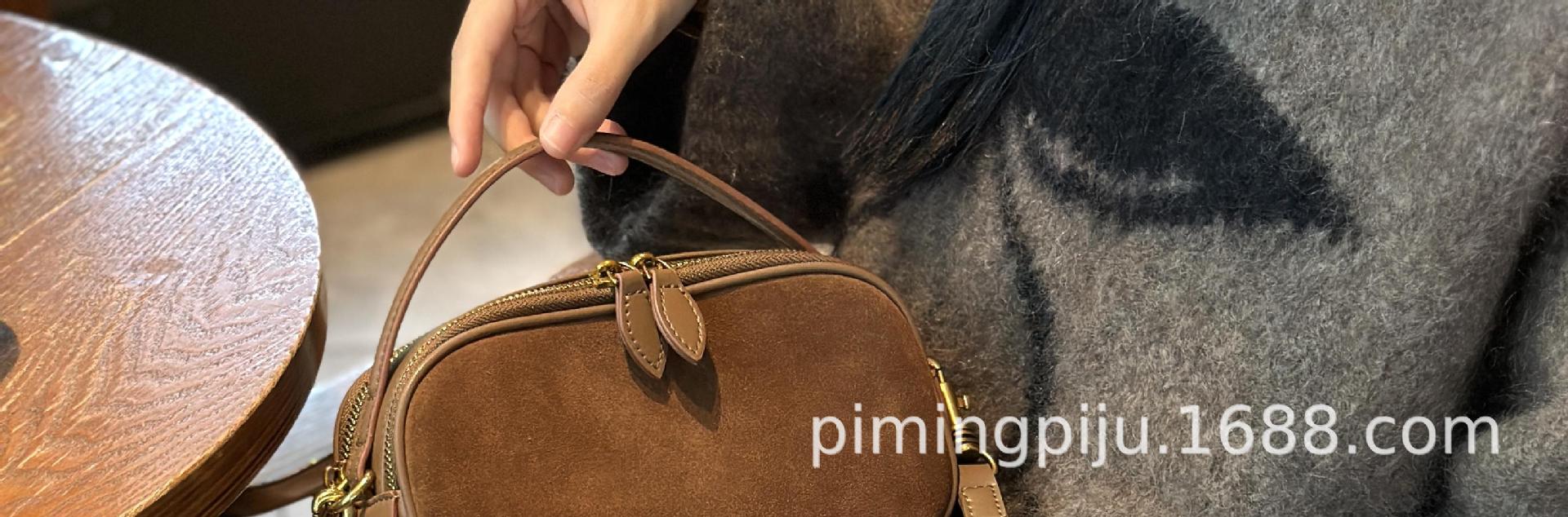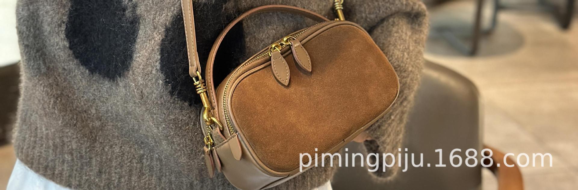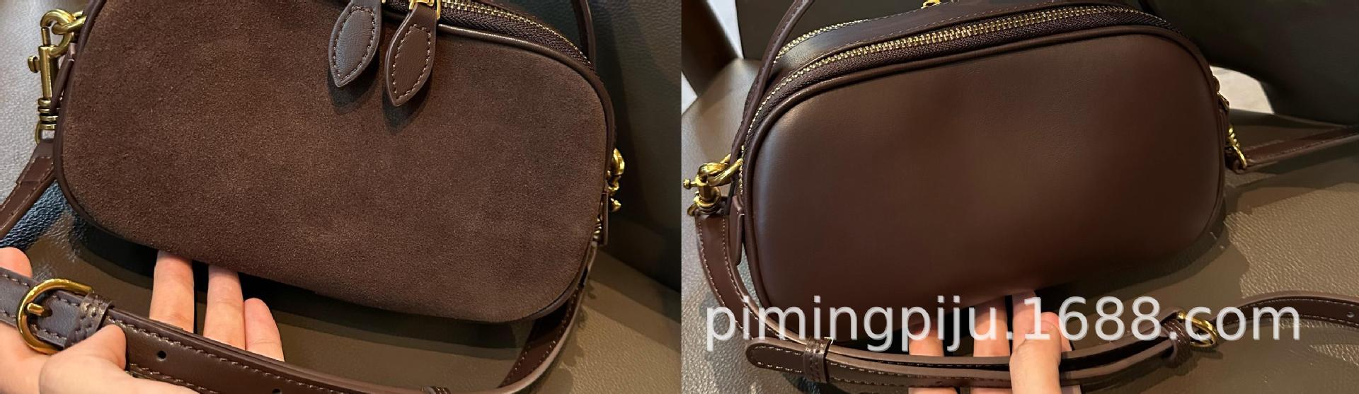 2025 Baidi 가죽 여성용 가방 크로스 보더 젖빛 소가죽 휴대용 카메라 가방 볼링 가방 고급 보스턴 백스토어 가기