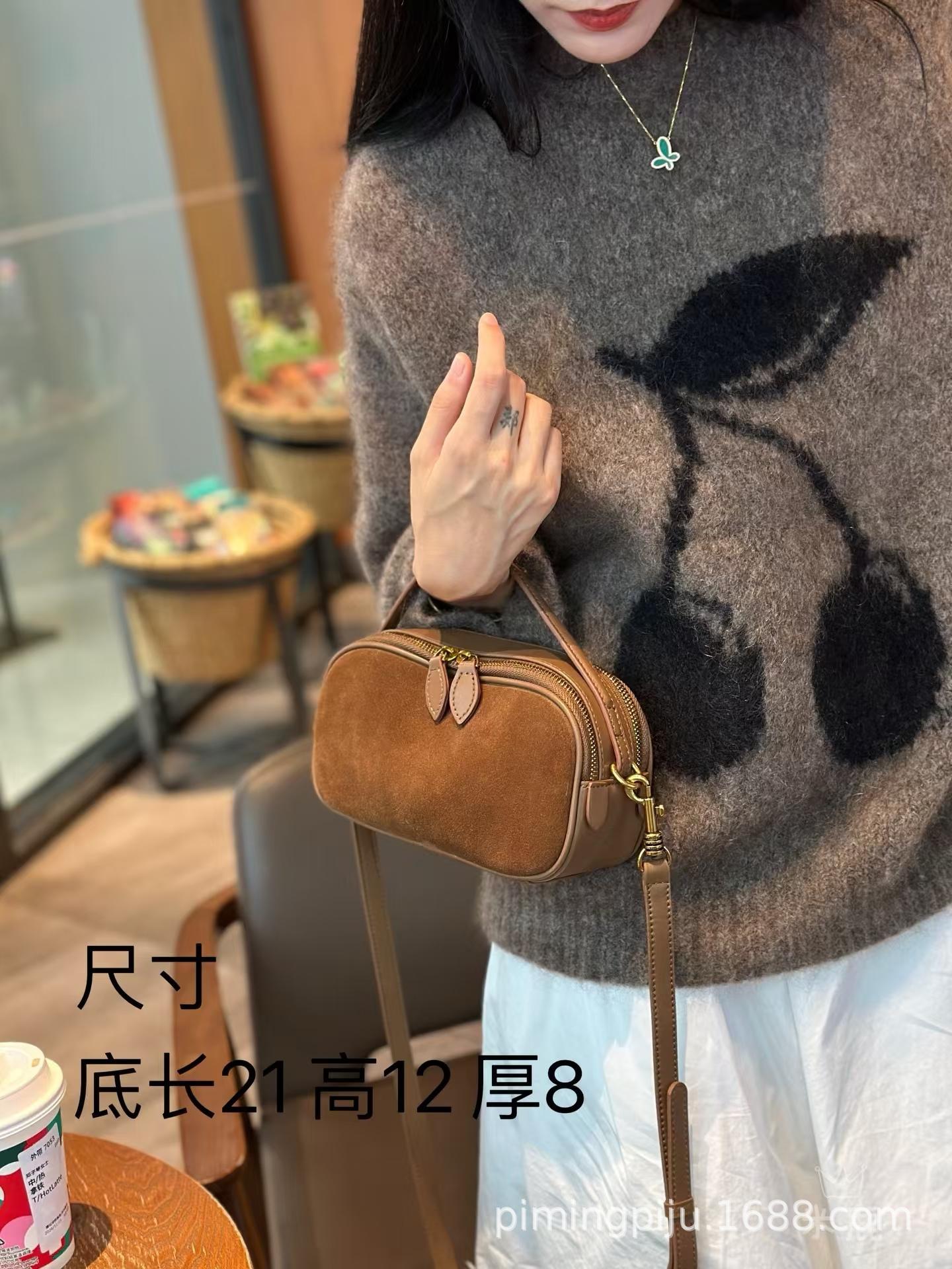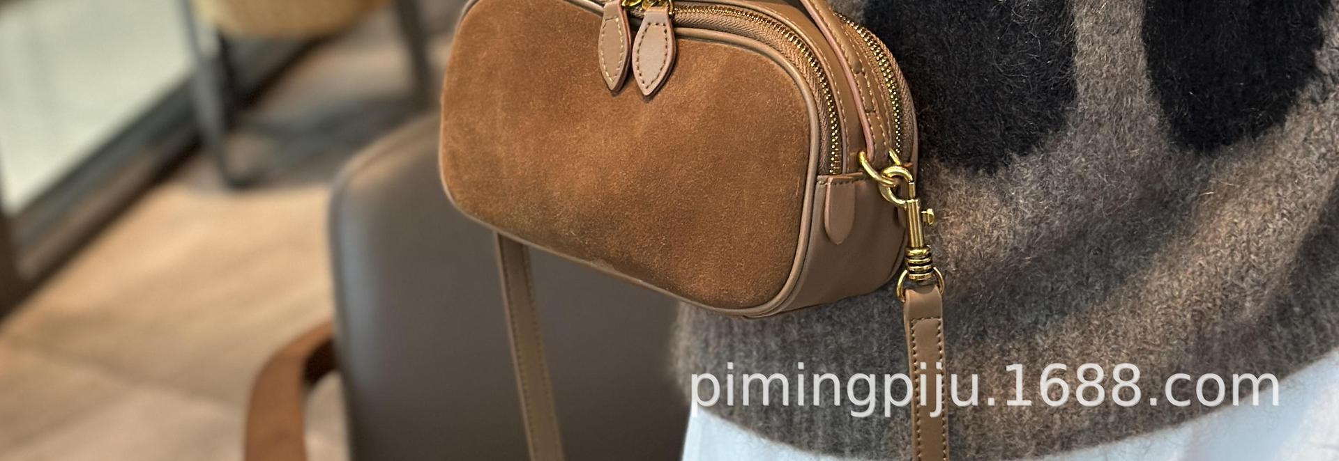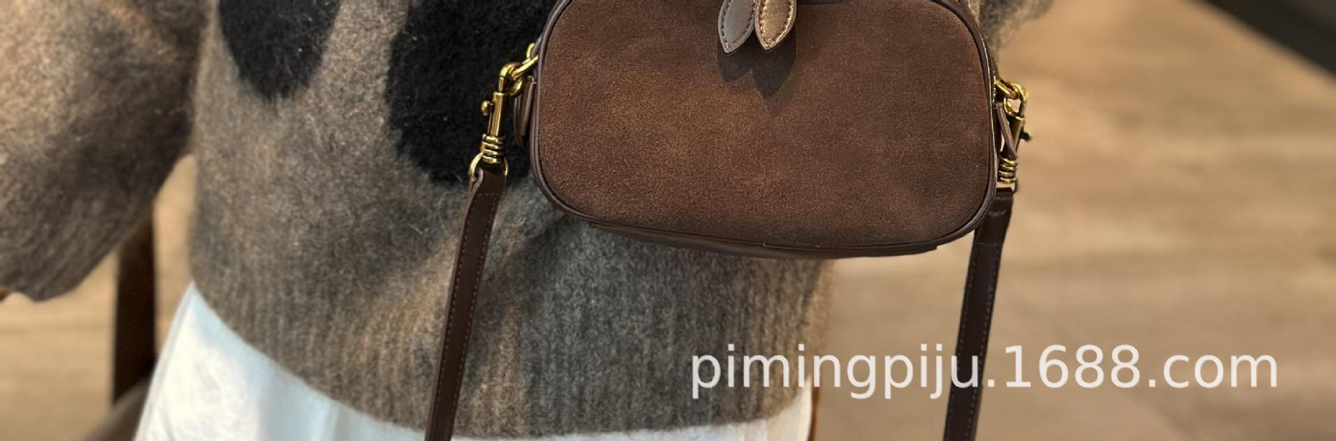 2025 Baidi 가죽 여성용 가방 크로스 보더 젖빛 소가죽 휴대용 카메라 가방 볼링 가방 고급 보스턴 백