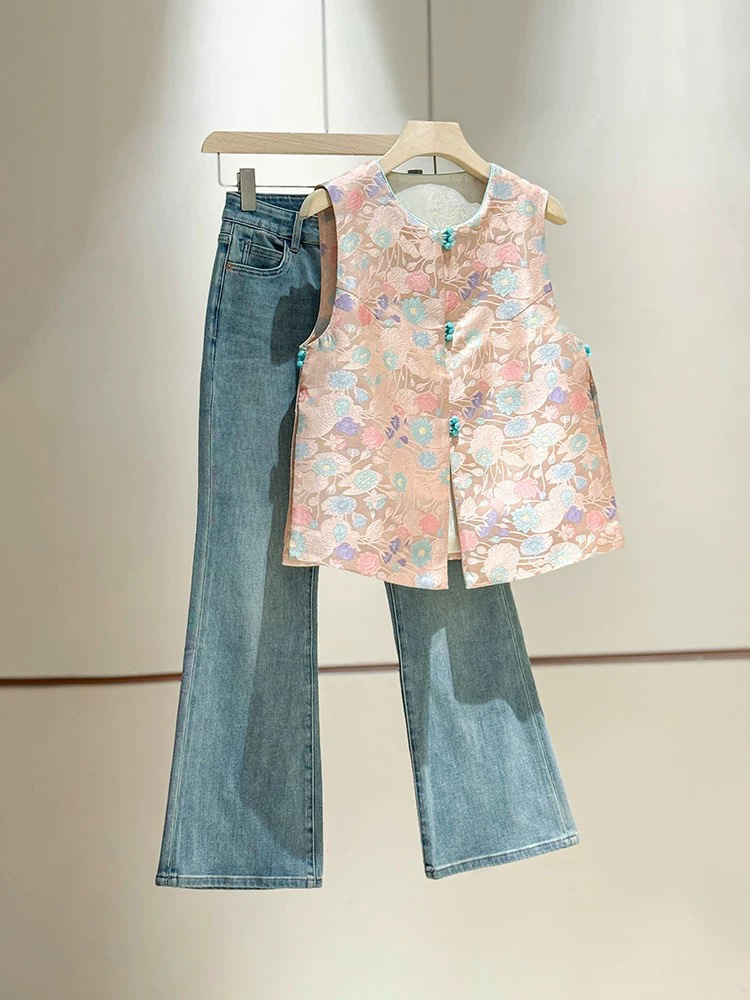 핑크색 노화 방지 새로운 중국 스타일 민족 스타일 조끼 재킷 여성 조끼 2025 봄, 가을 새로운 스타일 서양식 조끼