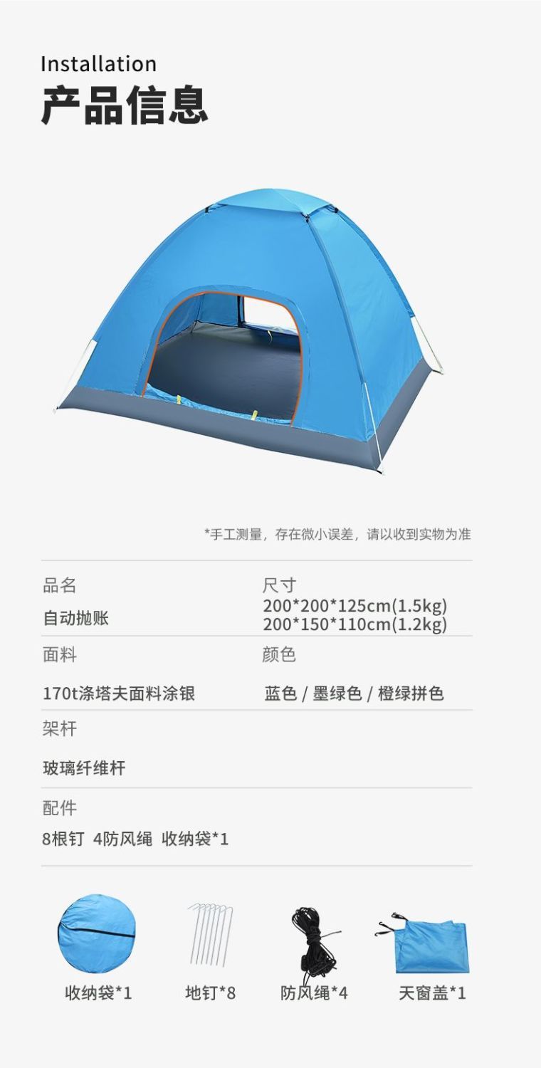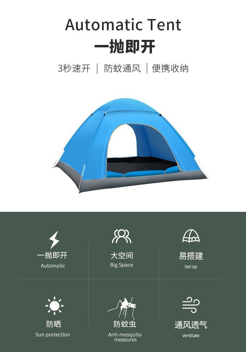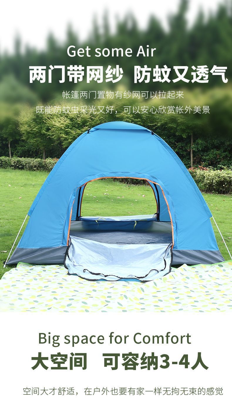 텐트 야외 캠핑 1인 접이식 완전 자동 빠른 개방 야외 캠핑 장비 3~4인용 방수 휴대용 풀 세트스토어 가기