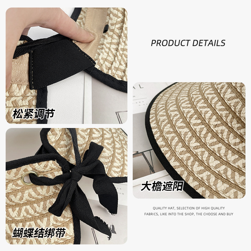 새로운 대형 챙 태양 보호 빈 모자 야외 여행 UV 보호 태양 모자 여름 해변 해변 밀짚 모자 여성용스토어 가기