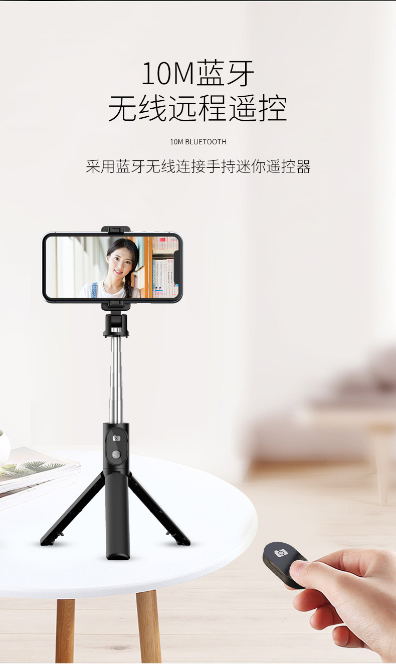 새로운 셀카봉, 일체형 수납, 작고 휴대가 간편한 블루투스 원격 제어 휴대폰 라이브 방송 스탠드 셀카봉